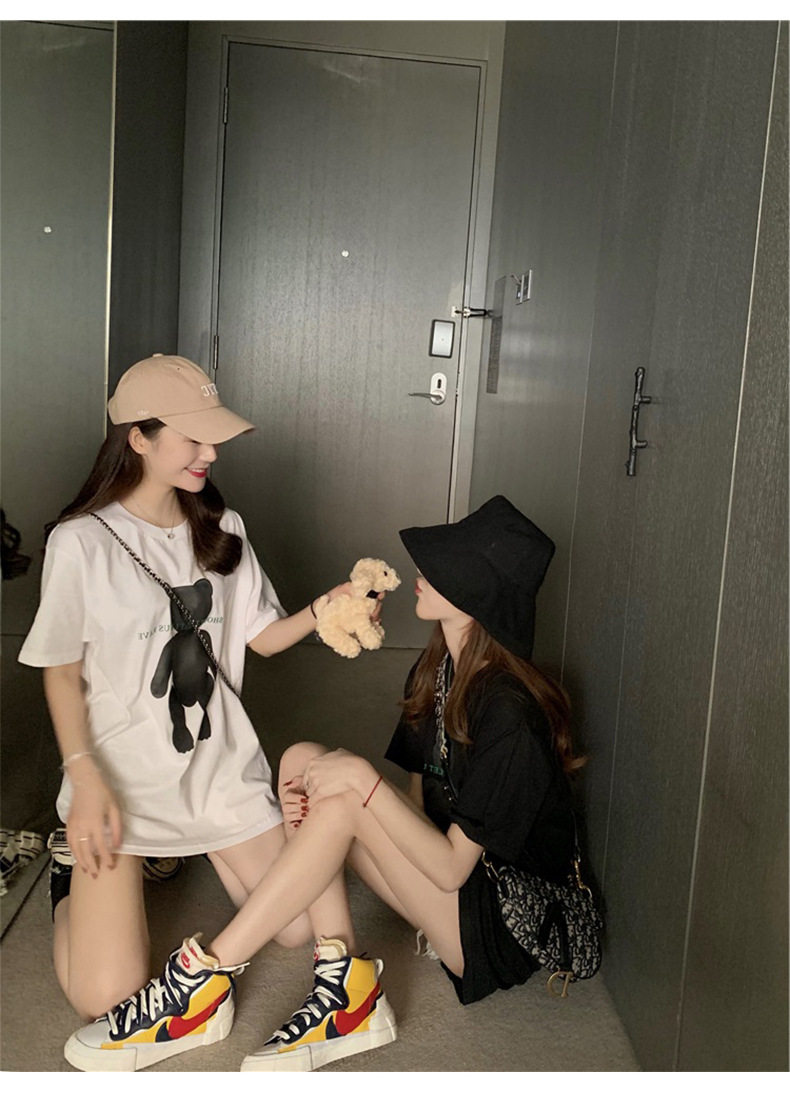 Tide, парная одежда для влюбленных, летняя сексуальная футболка с коротким рукавом, с медвежатами, оверсайз, в корейском стиле
