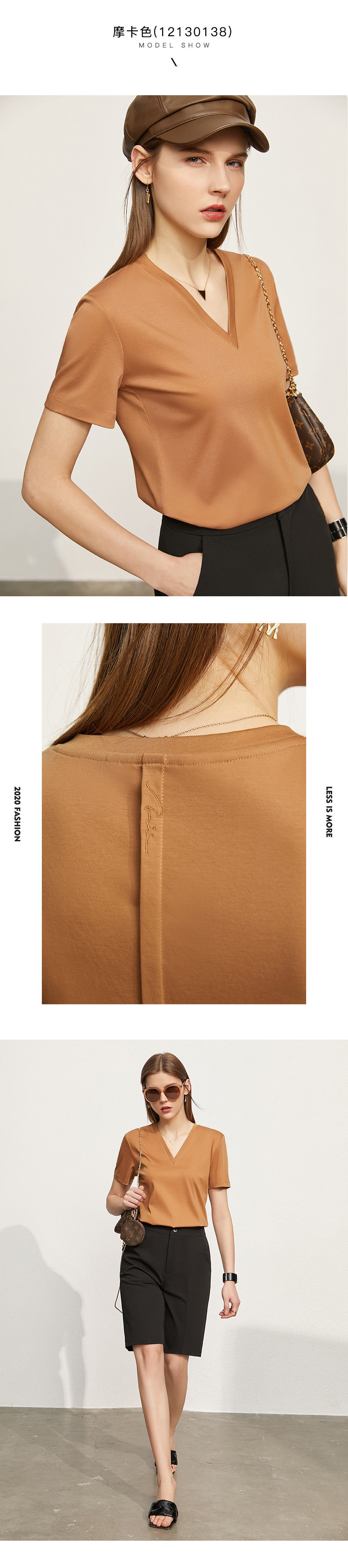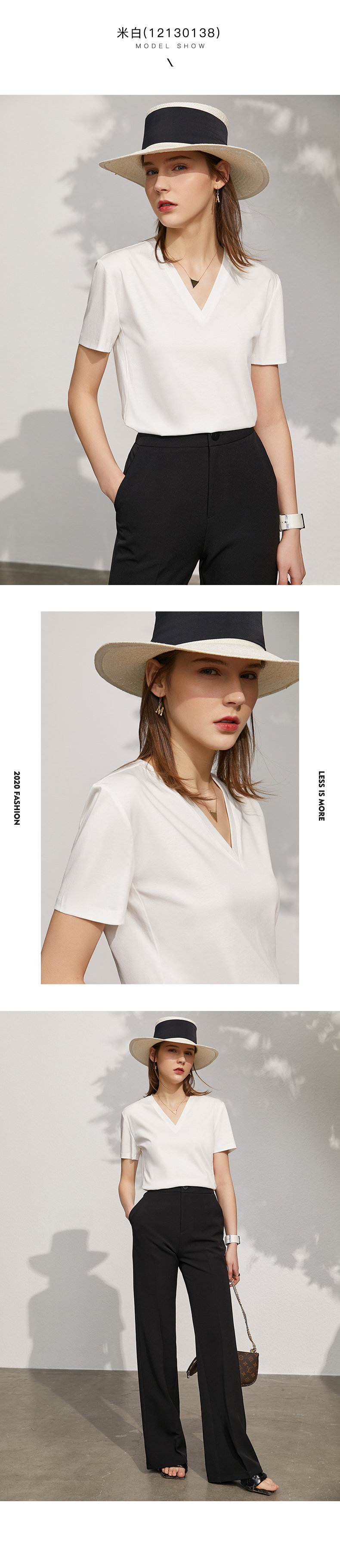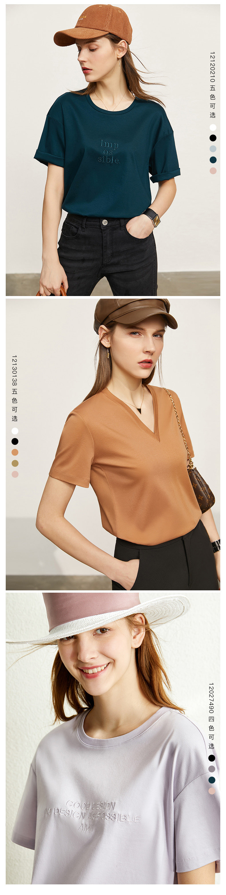 Amii Хлопковая летняя футболка, тонкая летняя одежда, короткий рукав, V-образный вырез