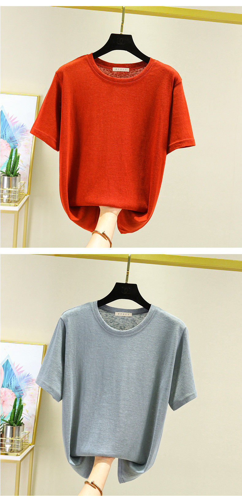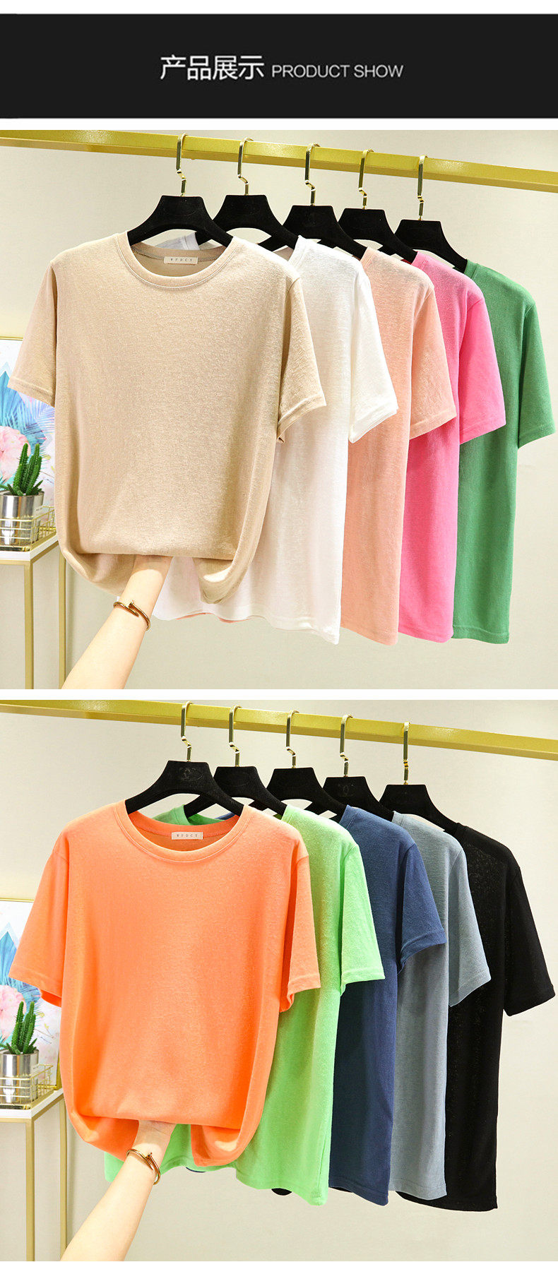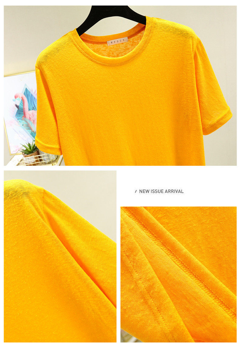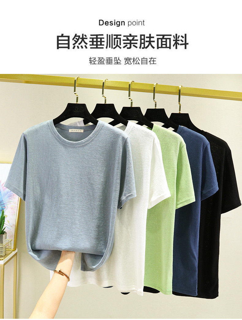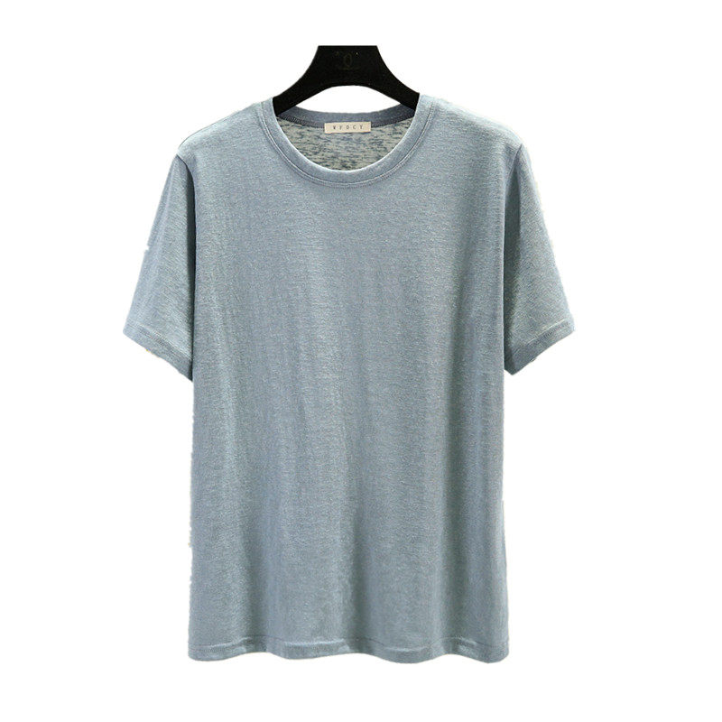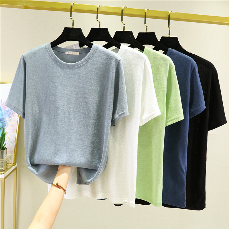Тонкая бамбуковая хлопковая базовая приятная телу футболка, из хлопка и льна, короткий рукав, большой размер, облегающий крой, в западном стиле