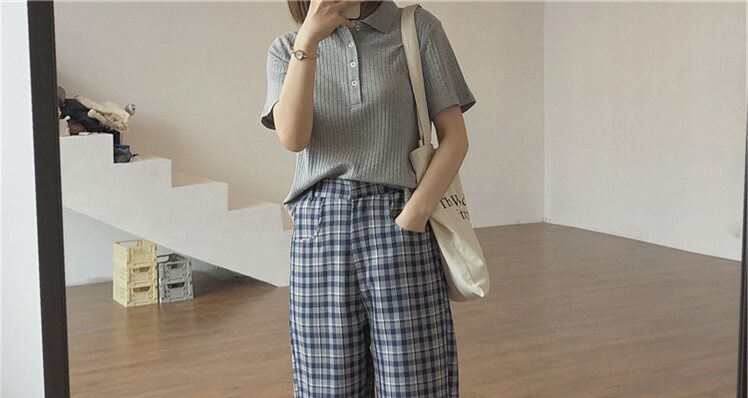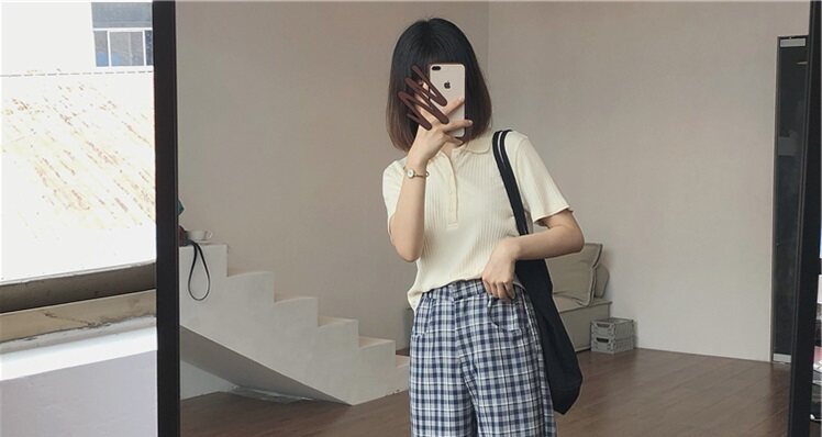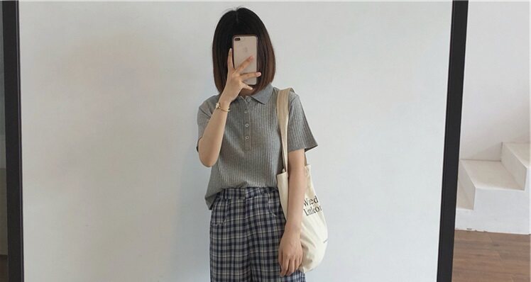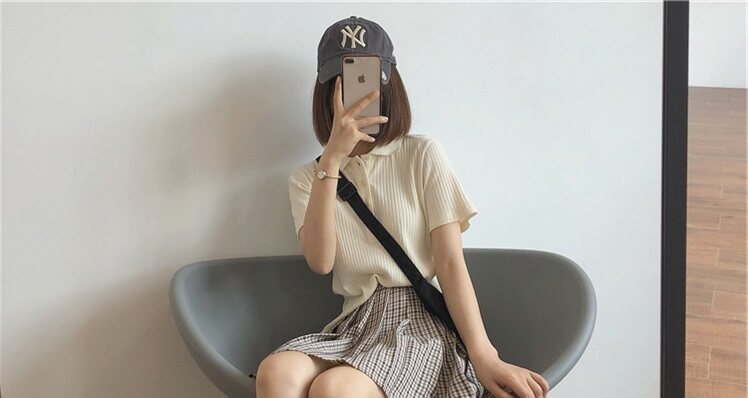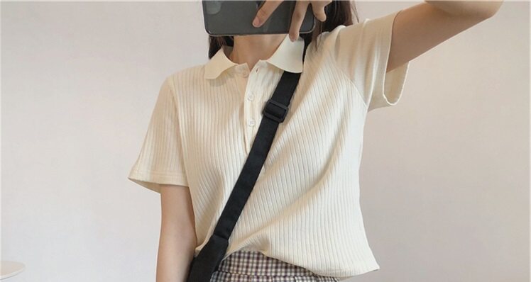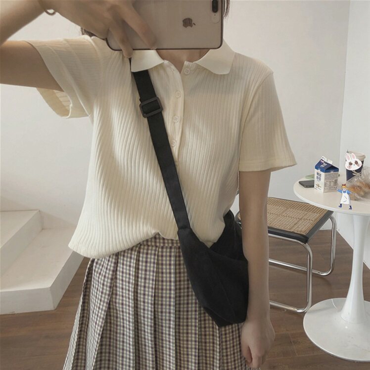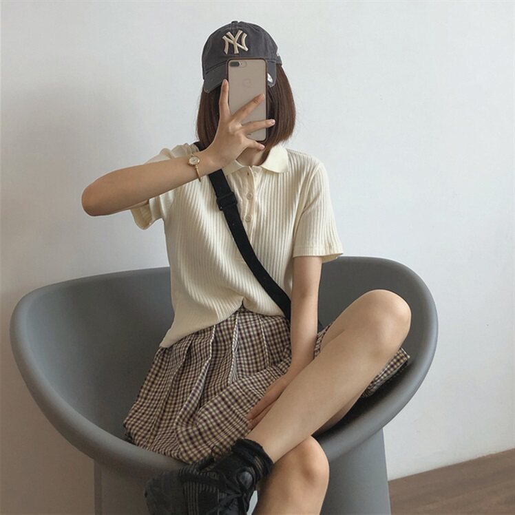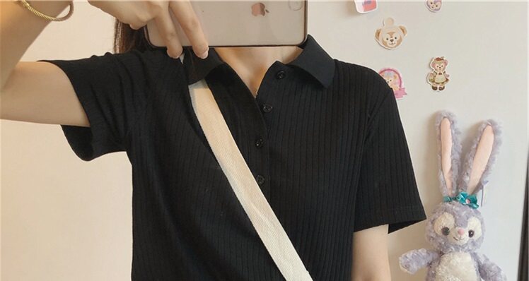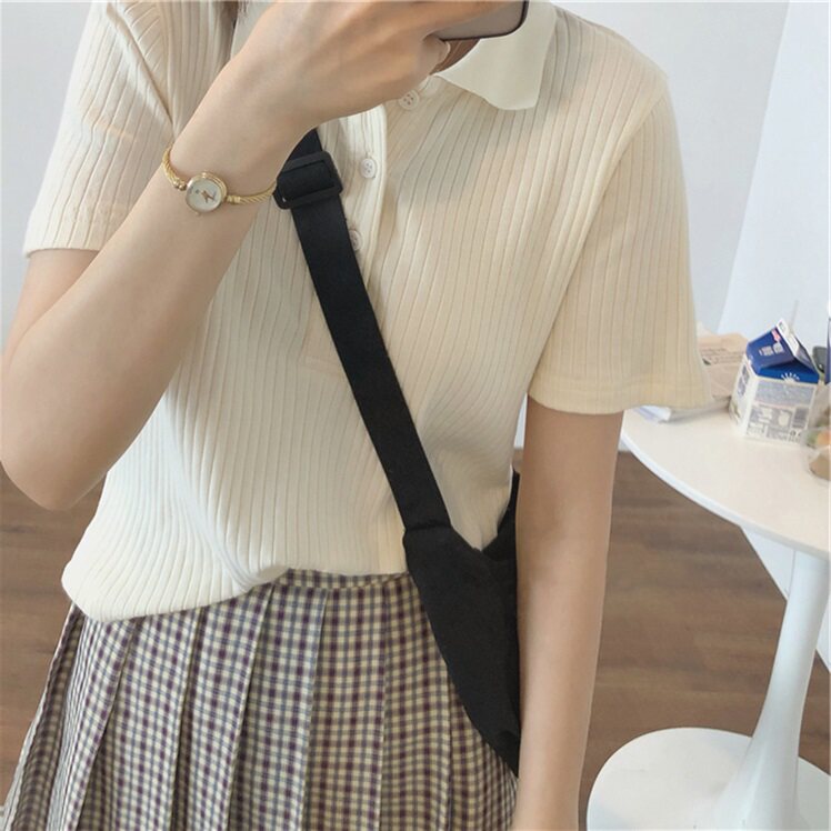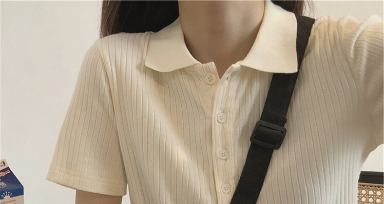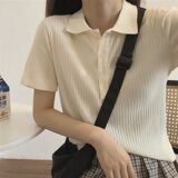 Летняя футболка, трикотажный короткий свитер для школьников, воротник поло, коллекция 2022, в корейском стиле