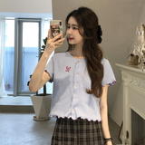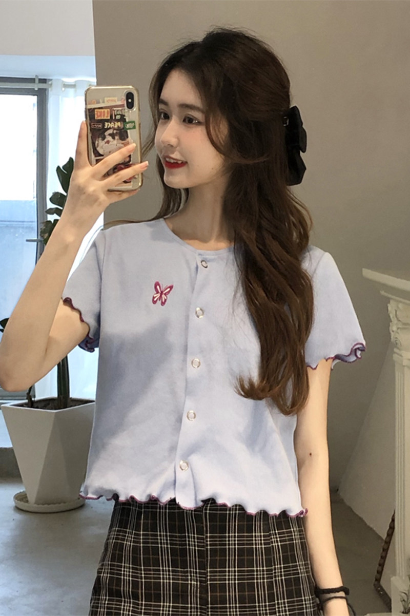 Брендовая летняя приталенная приятная телу футболка, с вышивкой, французский стиль, короткий рукав, коллекция 2021