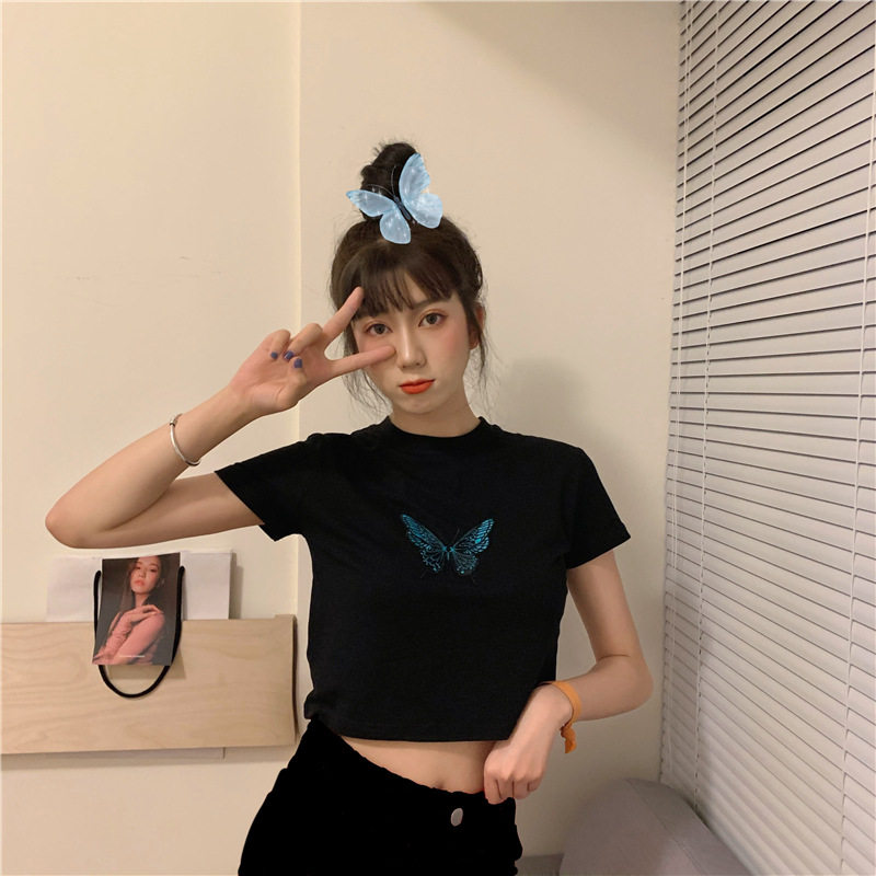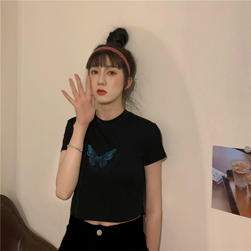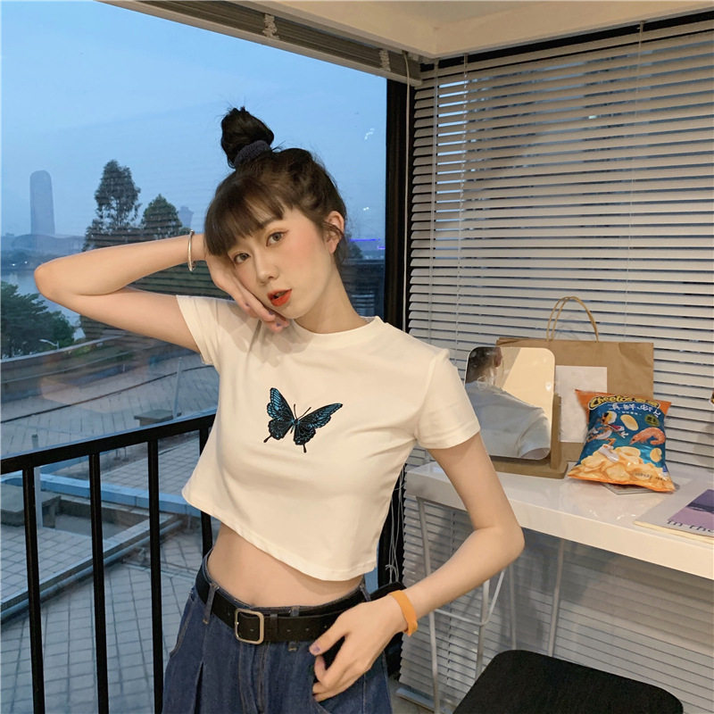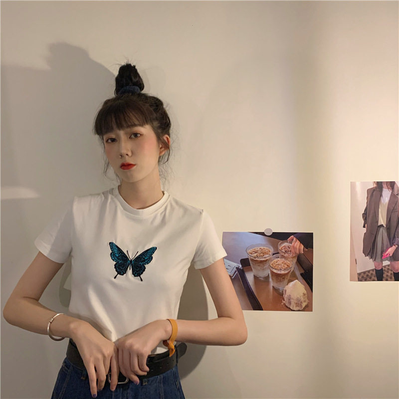 Ретро короткая футболка с коротким рукавом, в западном стиле, с вышивкой, облегающий крой