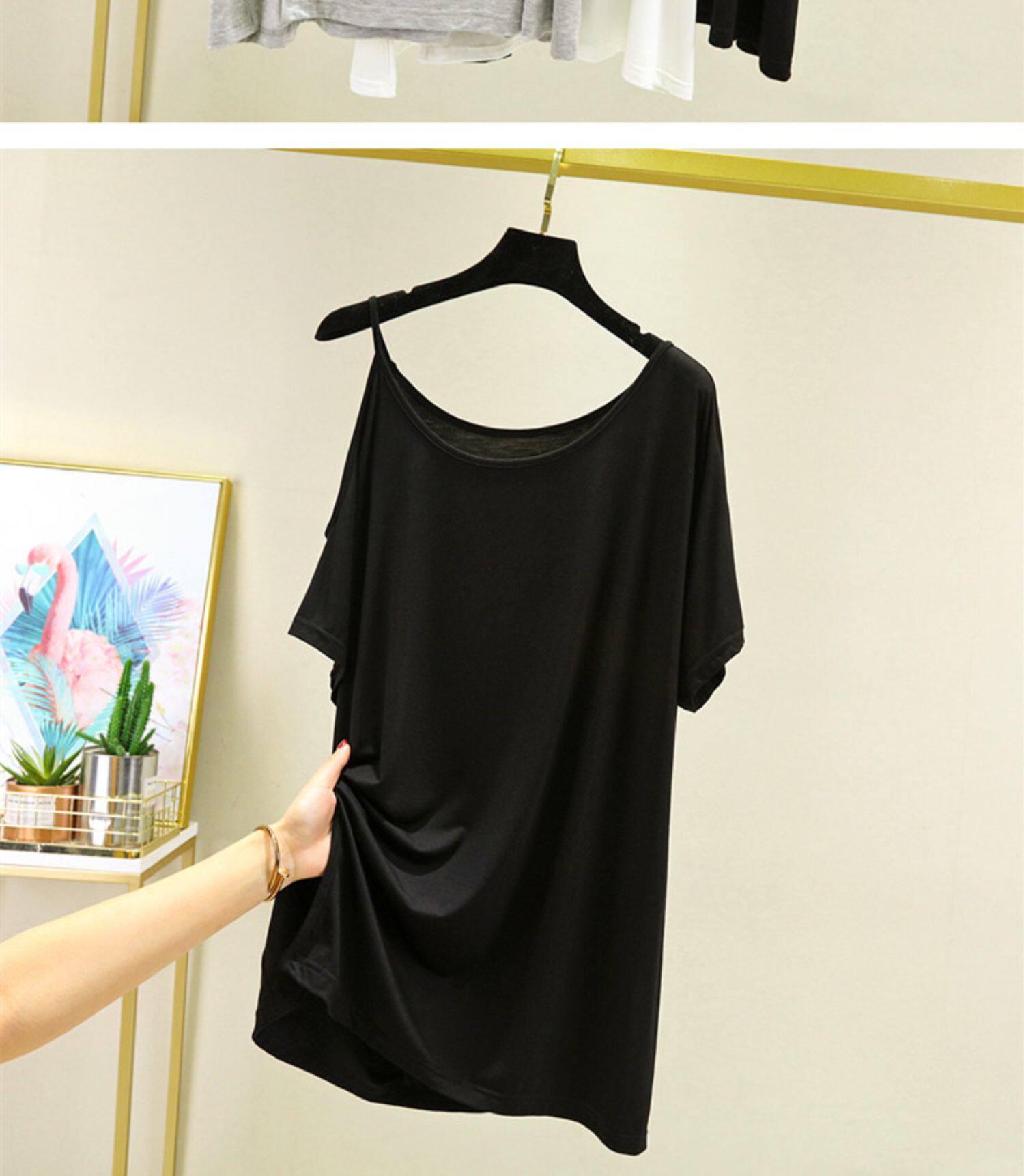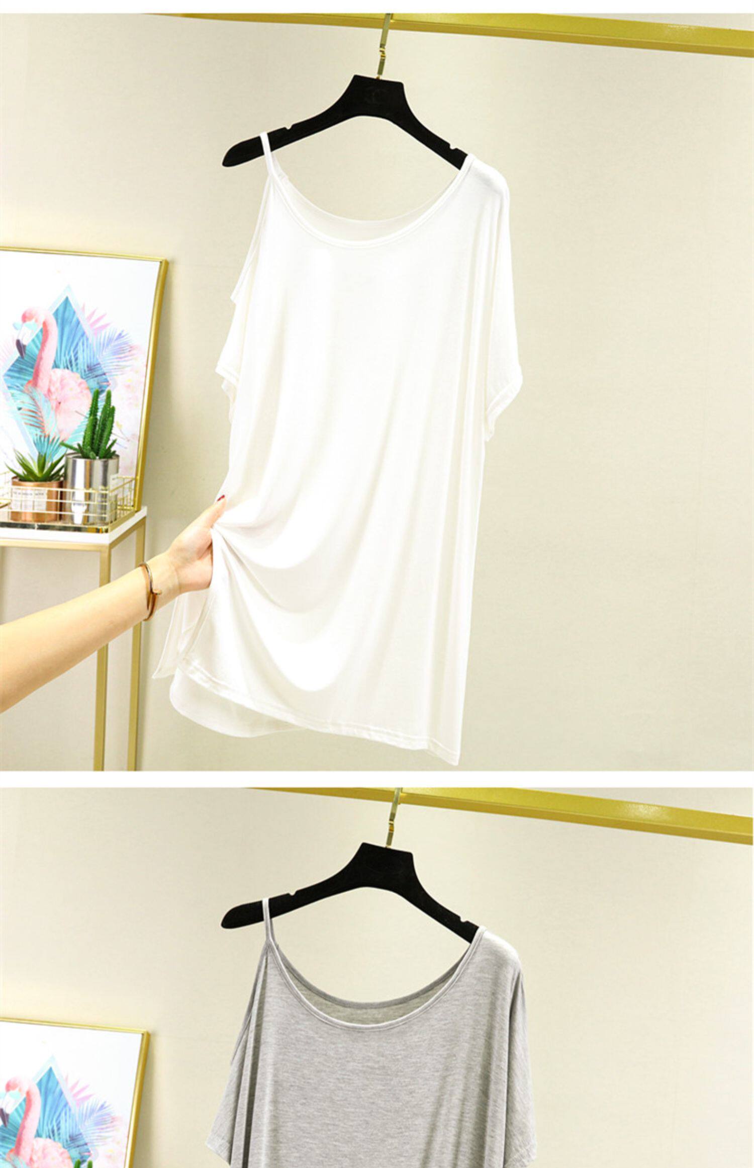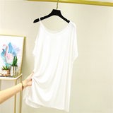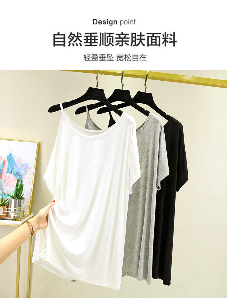 Летняя базовая приятная телу длинная тонкая футболка с коротким рукавом, сшита из модала, красивая спина, свободный крой, большой размер, средней длины