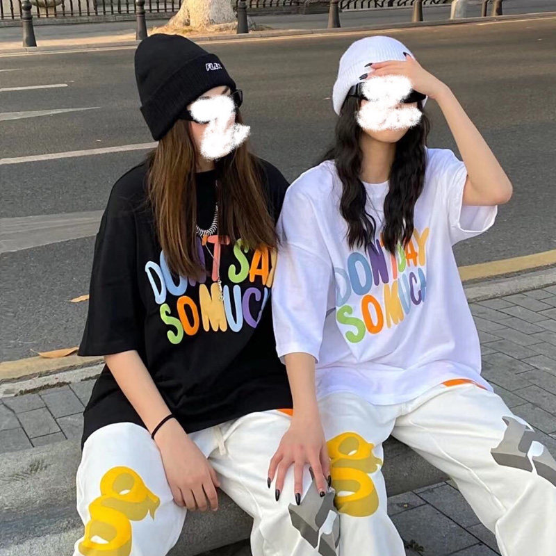 Tide, радужная хлопковая футболка с коротким рукавом, летняя одежда, этнический стиль, для влюбленных, 2021 года, оверсайз, в корейском стиле