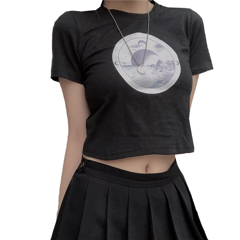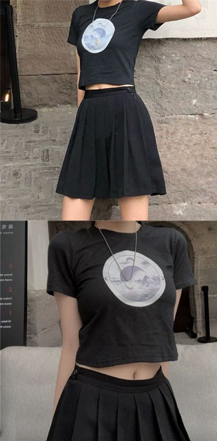 Короткая футболка, брендовая летняя одежда для школьников с круглым воротником, высокая талия, короткий рукав, в обтяжку