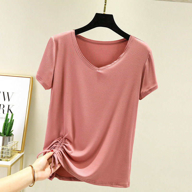 Летняя приталенная базовая приятная телу футболка, V-образный вырез, по фигуре, большой размер, на шнурках, в западном стиле