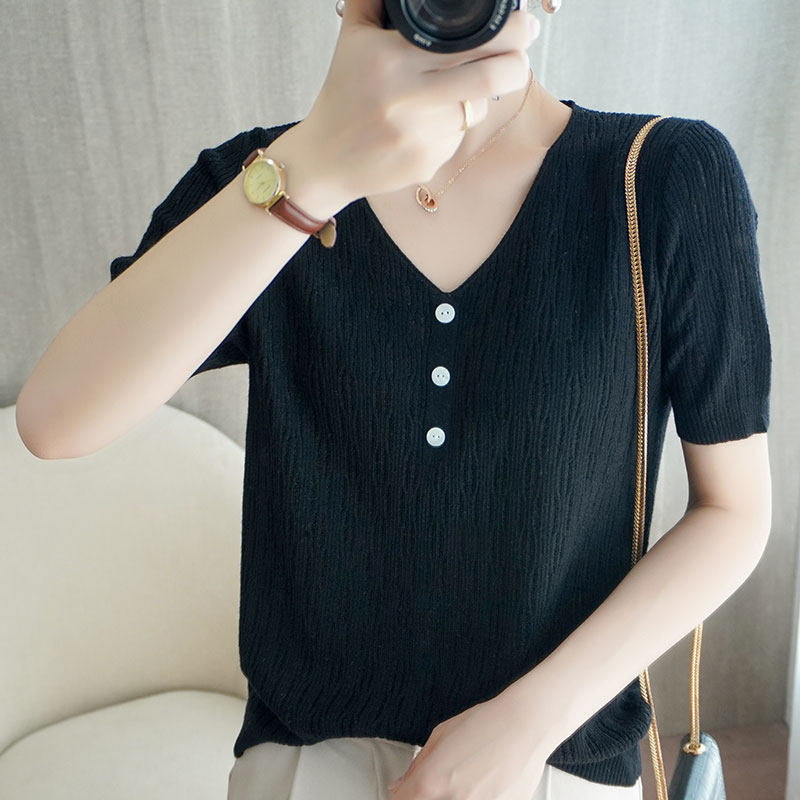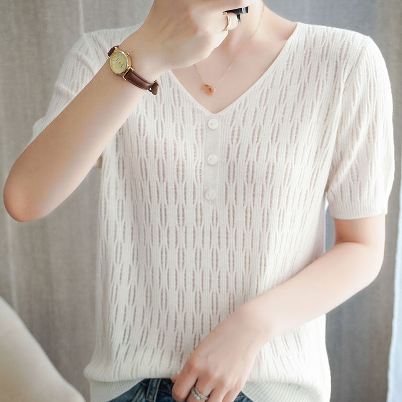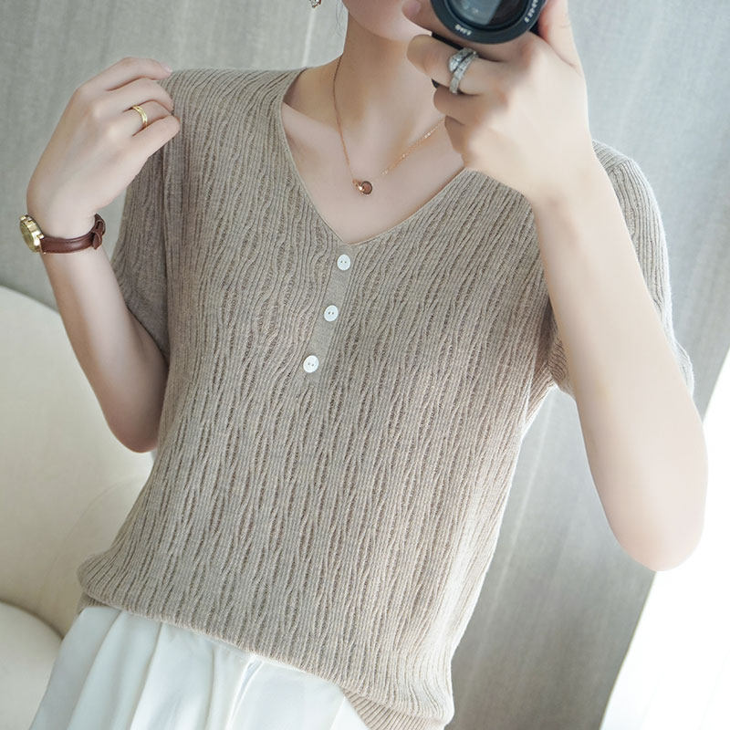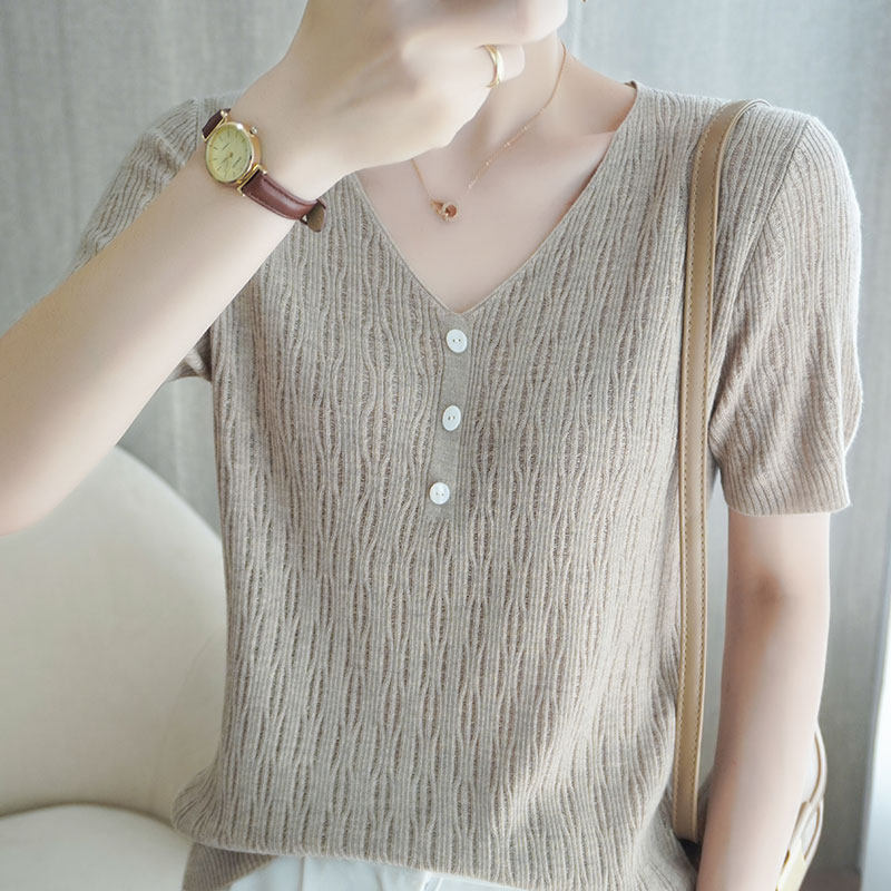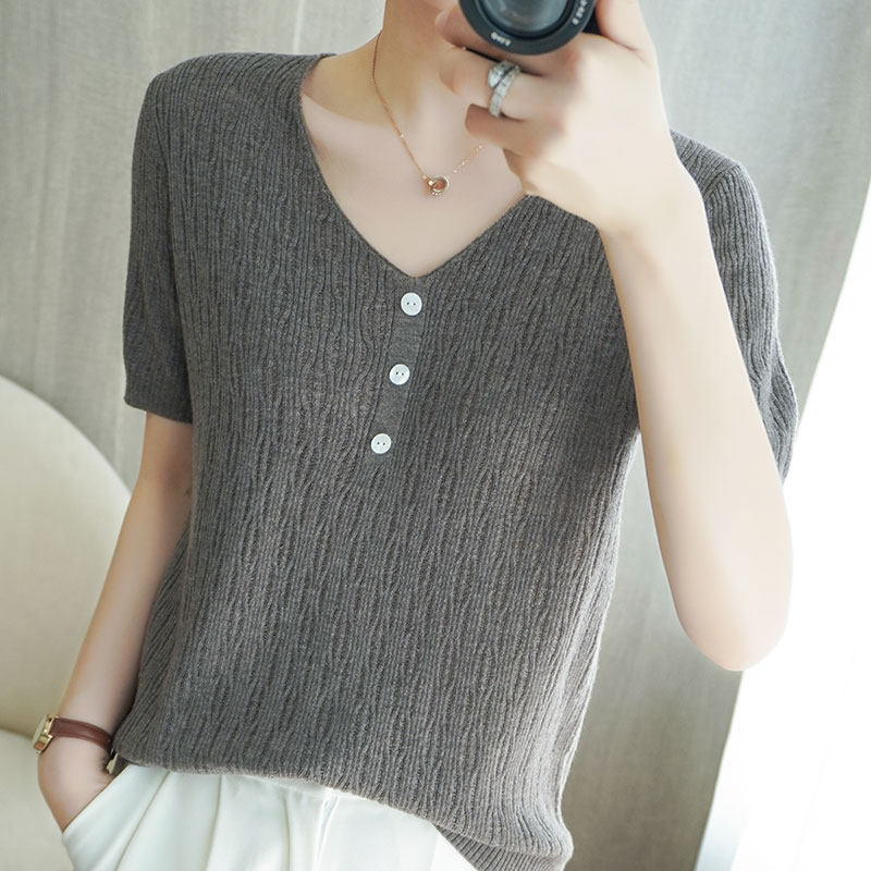 Весенняя летняя шерстяная тонкая базовая приятная телу футболка с коротким рукавом, трикотажный свитер, 21 года, оверсайз