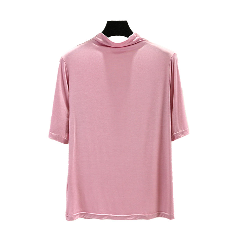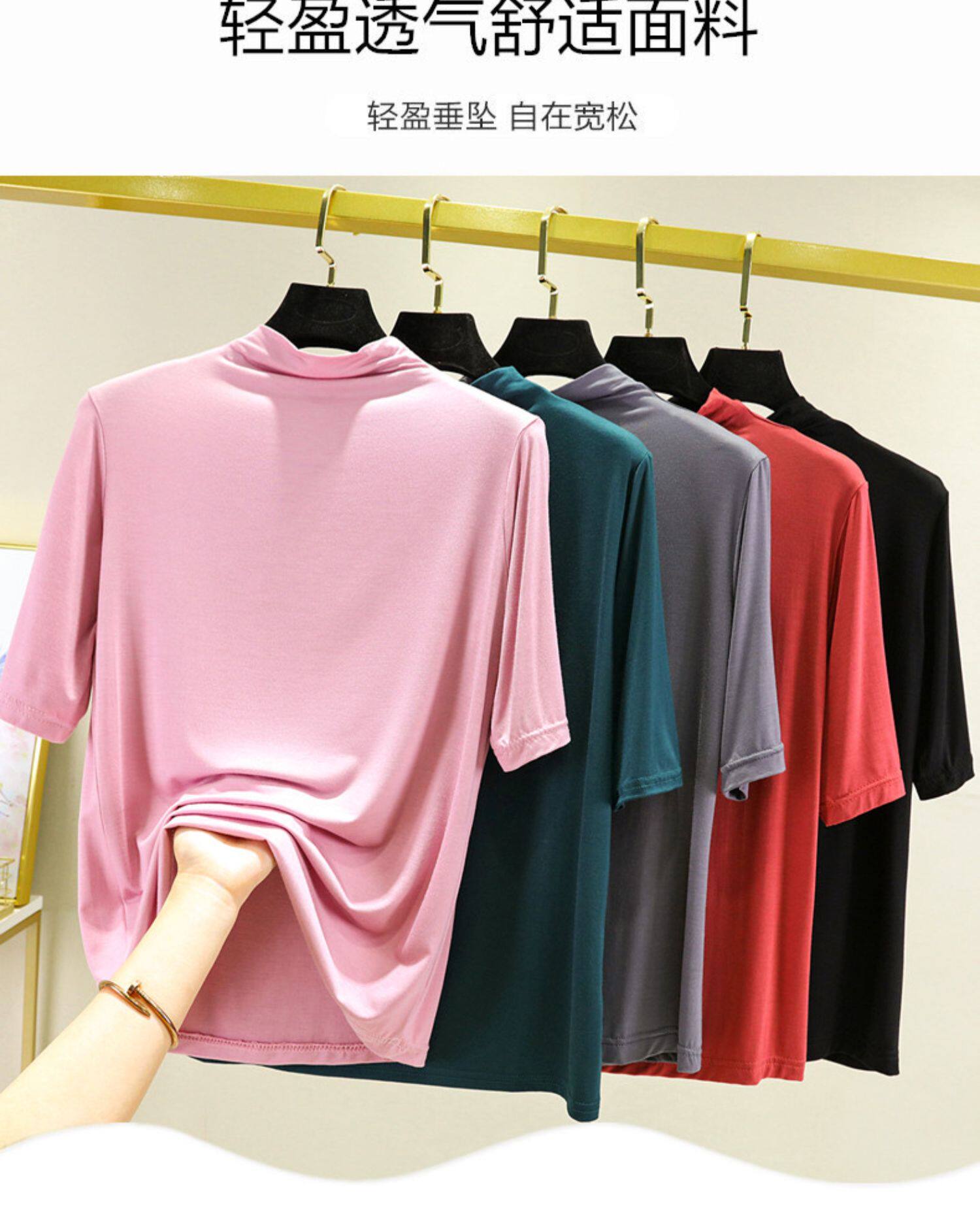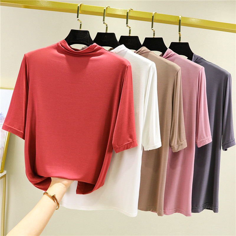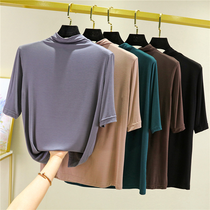 Тонкая цветная базовая приятная телу футболка, высокий воротник, короткий рукав