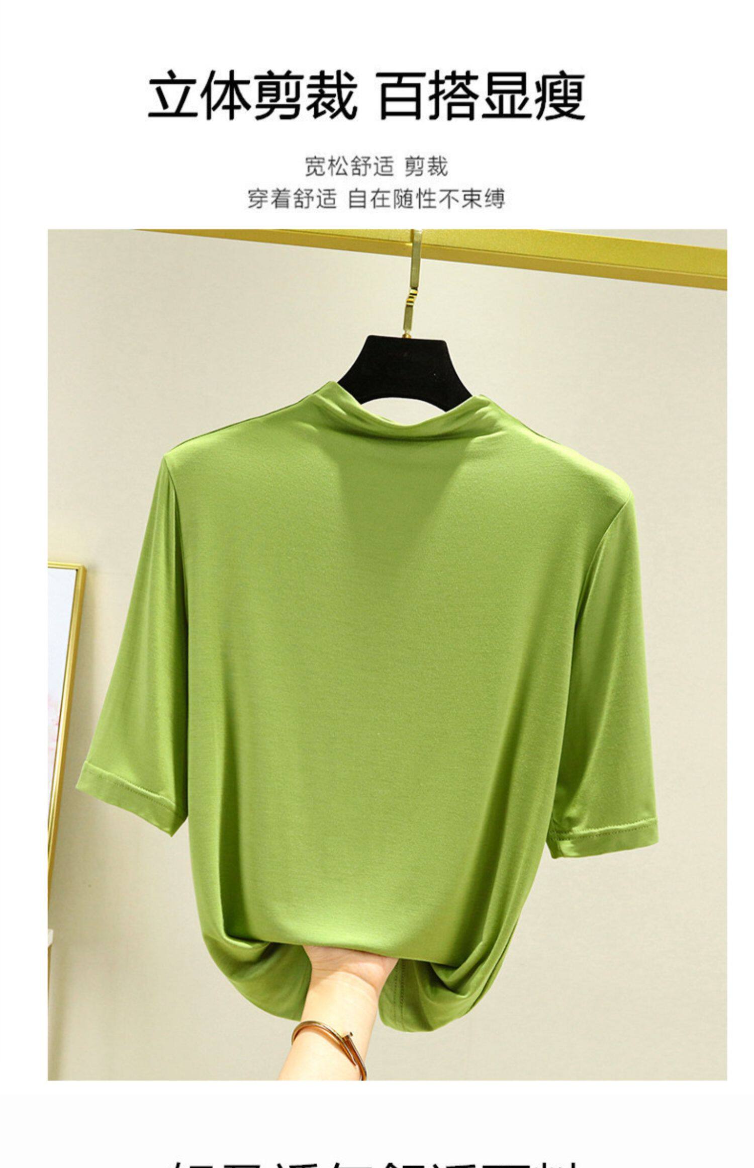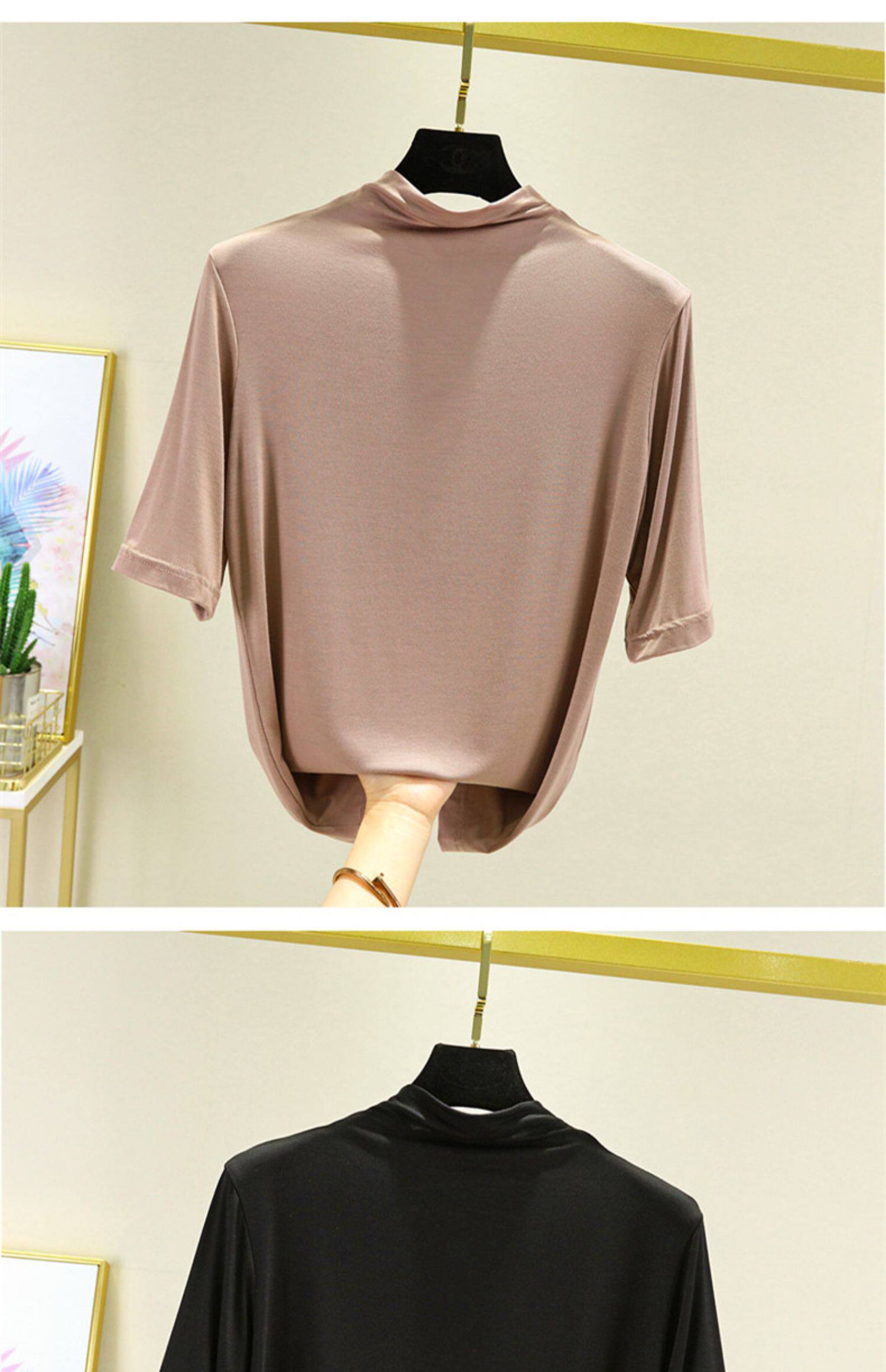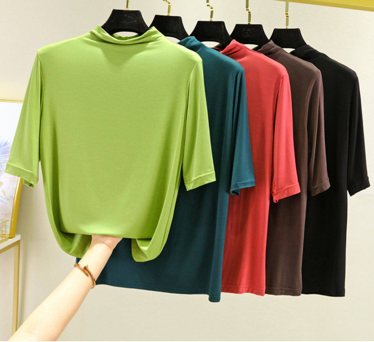 Тонкая цветная базовая приятная телу футболка, высокий воротник, короткий рукав