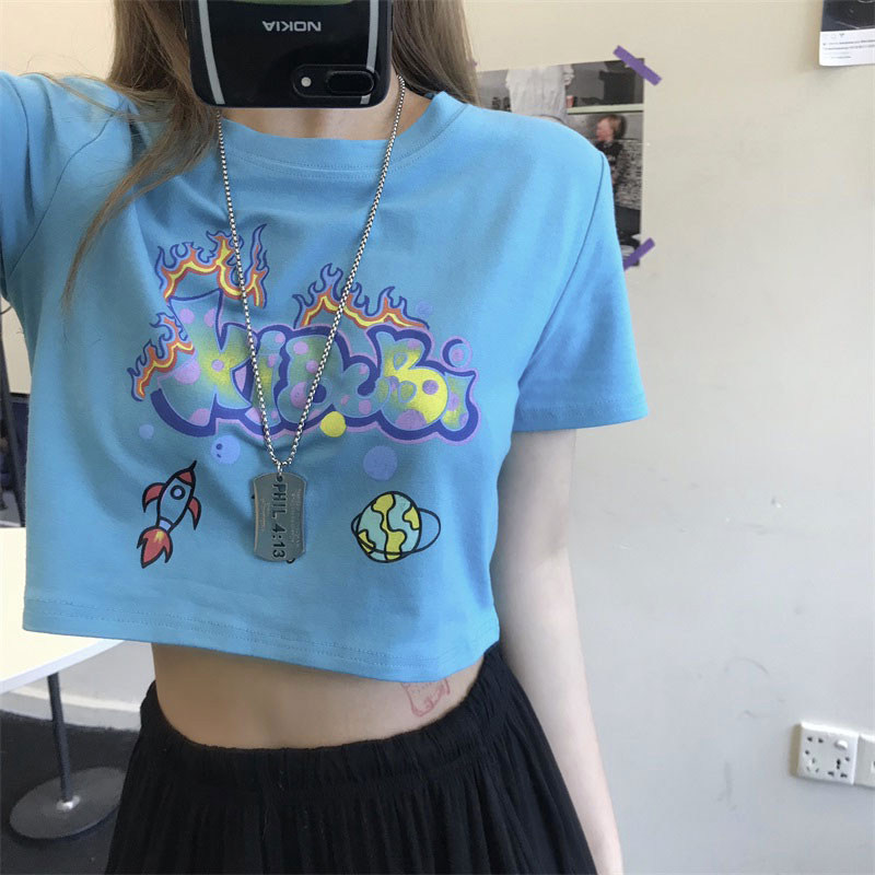 Летняя футболка с коротким рукавом, брендовая сексуальная короткая парная одежда для влюбленных, свободный крой, популярно в интернете, высокая талия