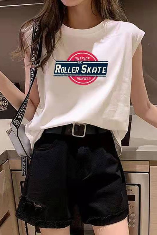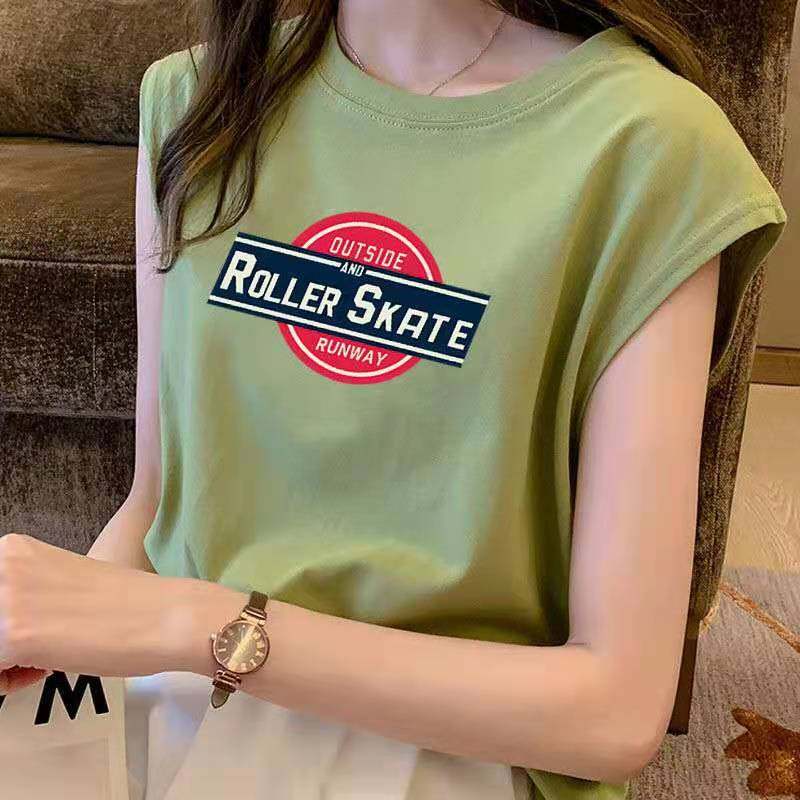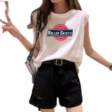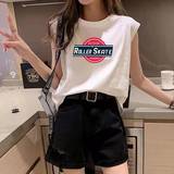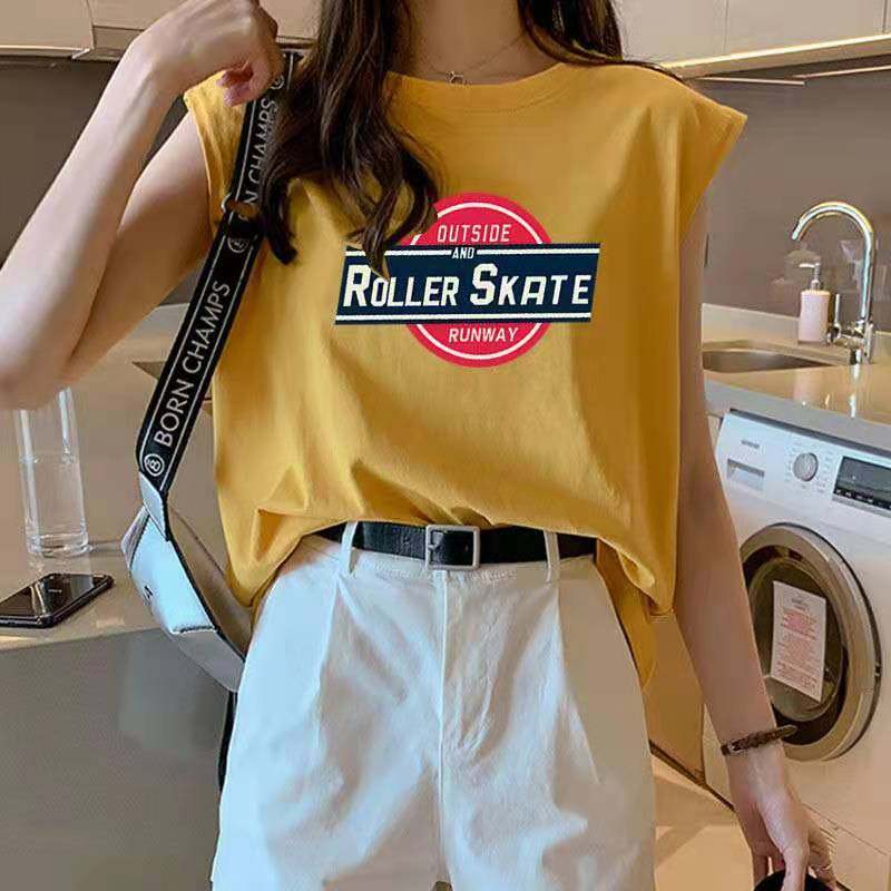 Летняя футболка без рукавов, жилет, свободный крой, в корейском стиле