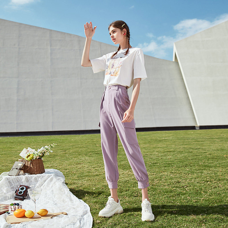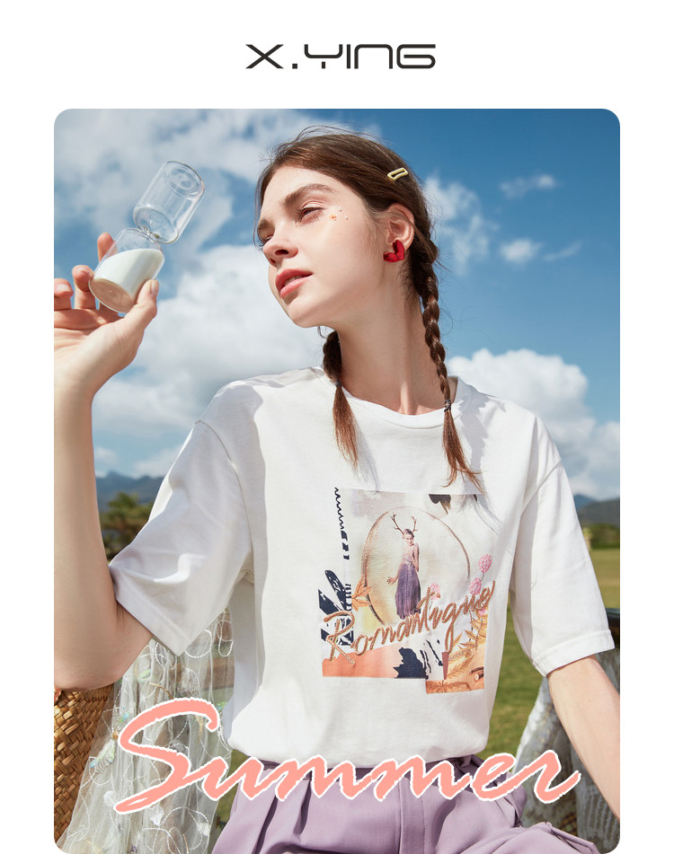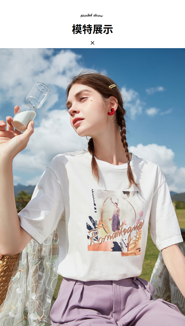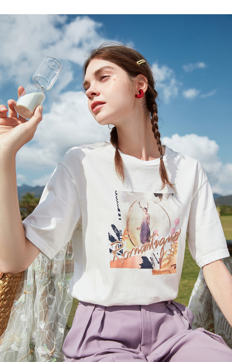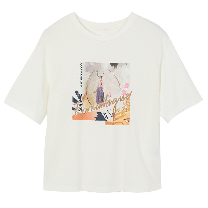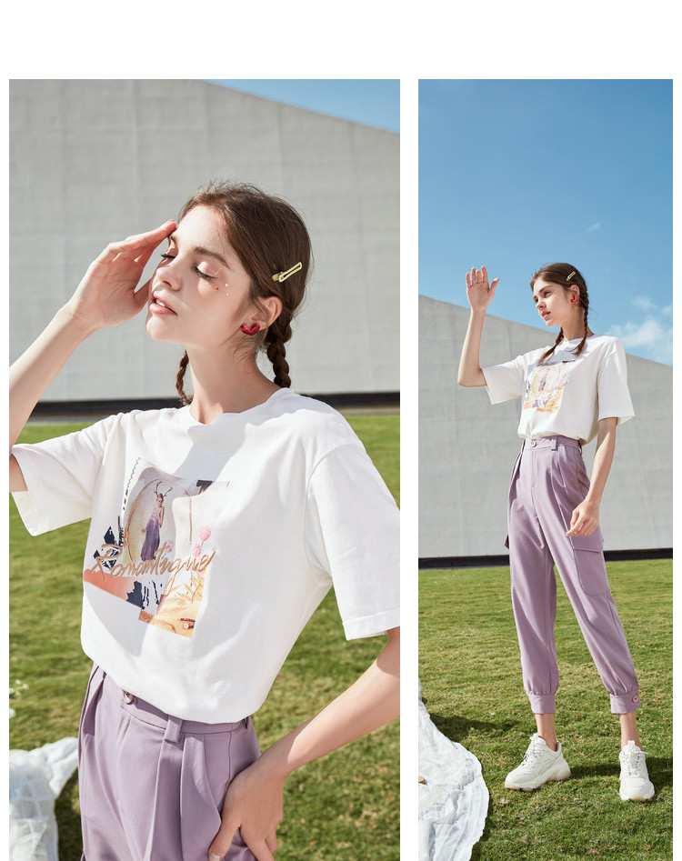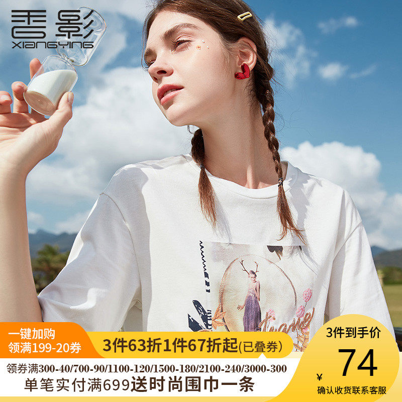 香影 Хлопковая футболка, летняя одежда, свободный крой, сезон 2021, в корейском стиле, короткий рукав, с вышивкой