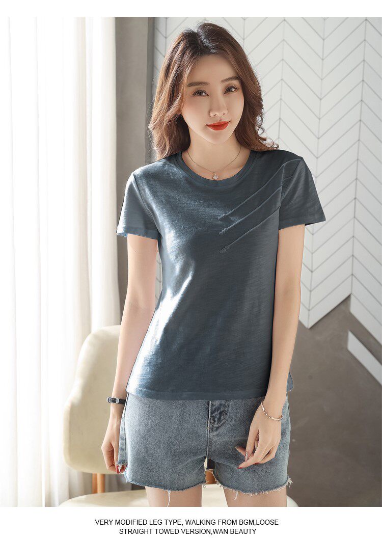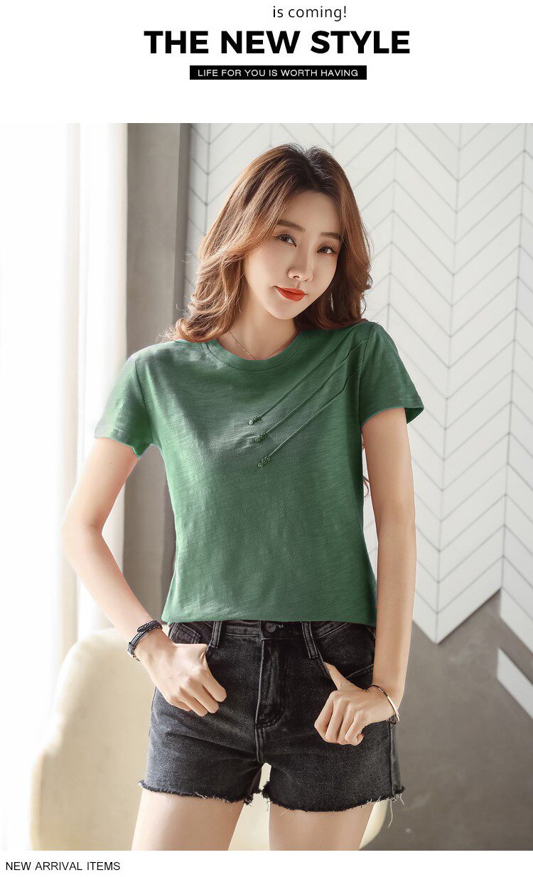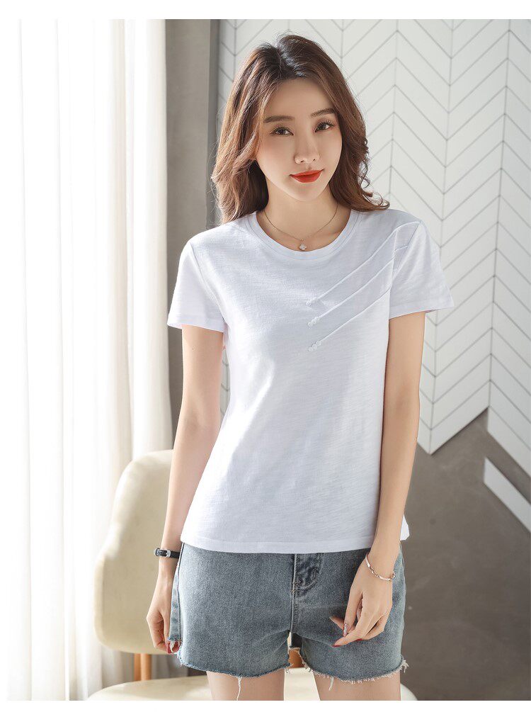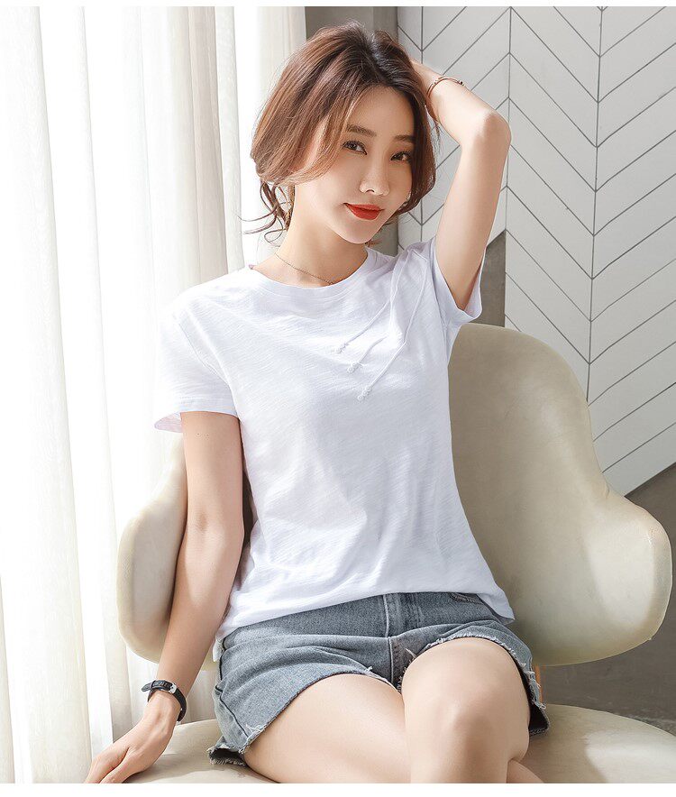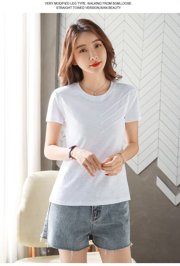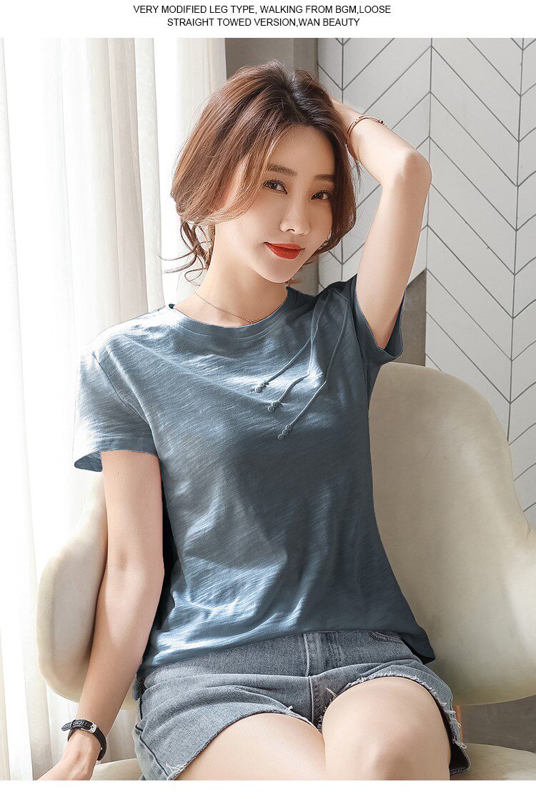 Летняя хлопковая небольшая футболка с коротким рукавом, коллекция 2023, городской стиль, в западном стиле