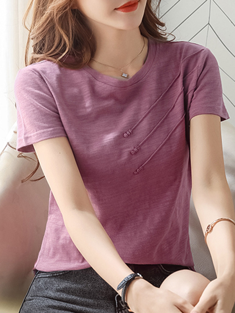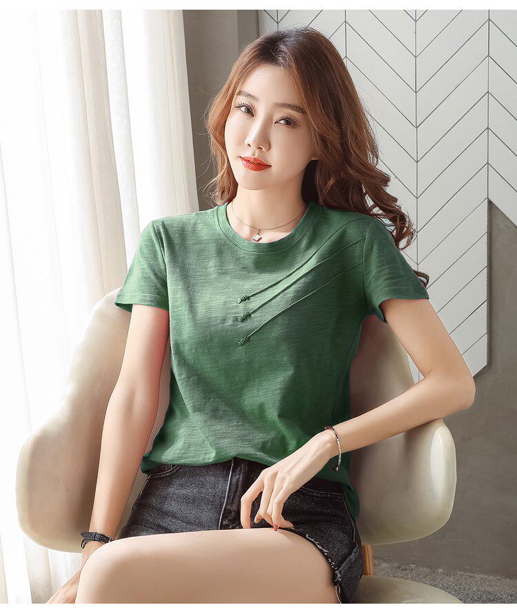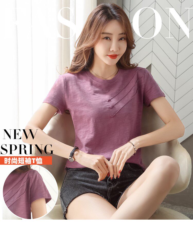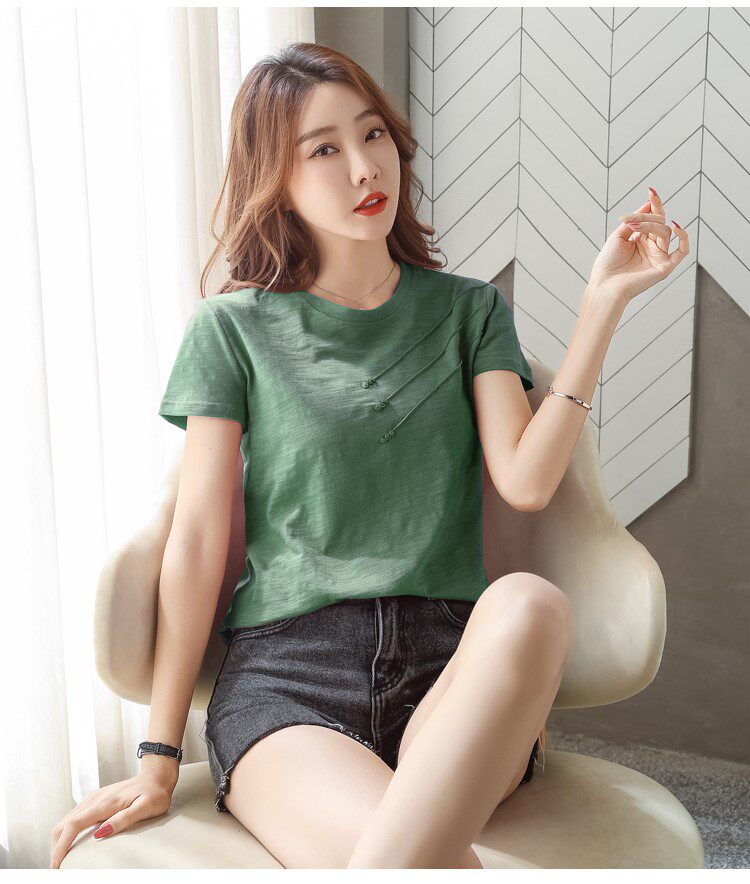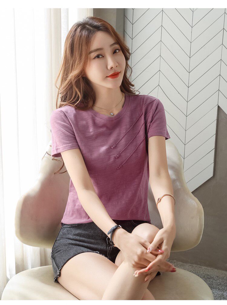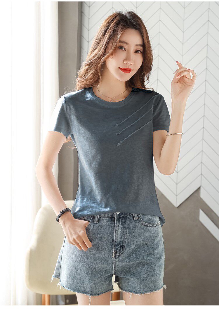 Летняя хлопковая небольшая футболка с коротким рукавом, коллекция 2023, городской стиль, в западном стиле