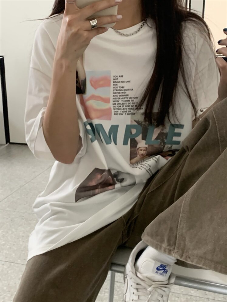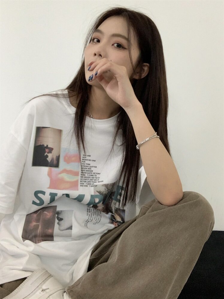 Ретро летняя брендовая длинная футболка с коротким рукавом, в американском стиле, в корейском стиле, популярно в интернете, средней длины