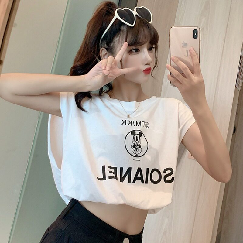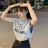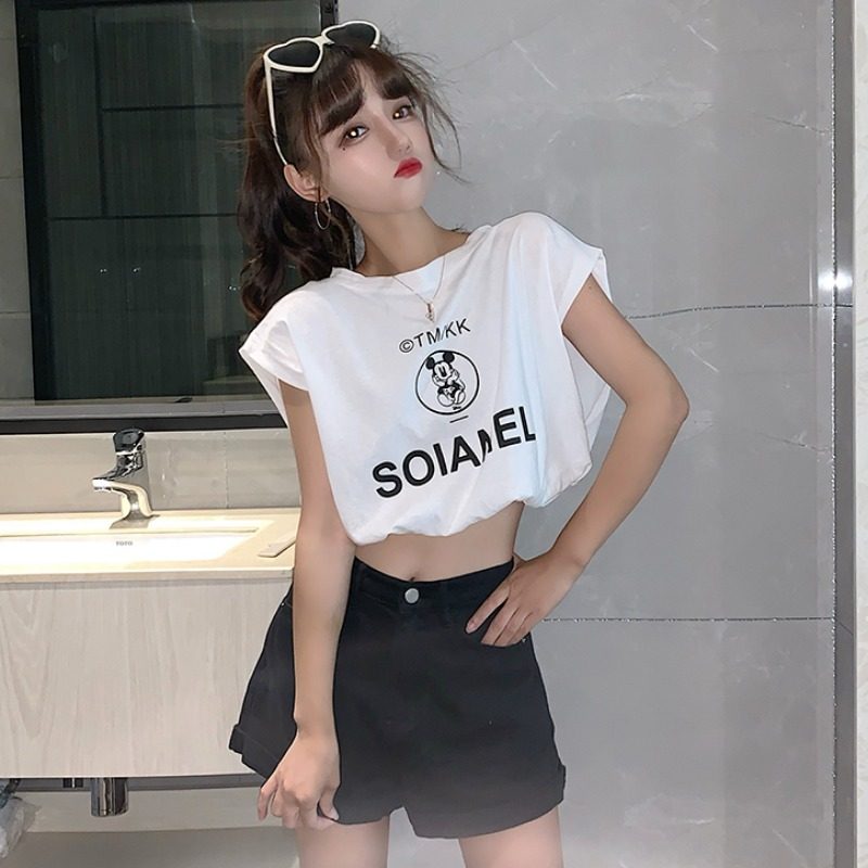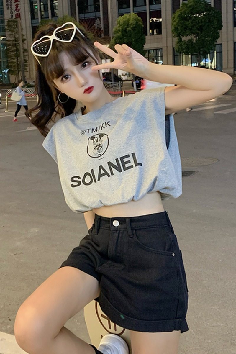 Летний мультяшный короткий жилет без рукавов, футболка, подходит для подростков, принт
