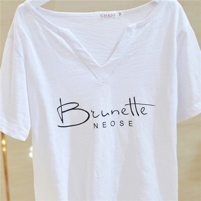 Белая летняя хлопковая футболка, в корейском стиле, оверсайз, V-образный вырез