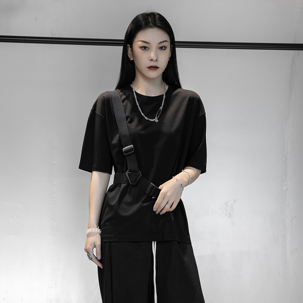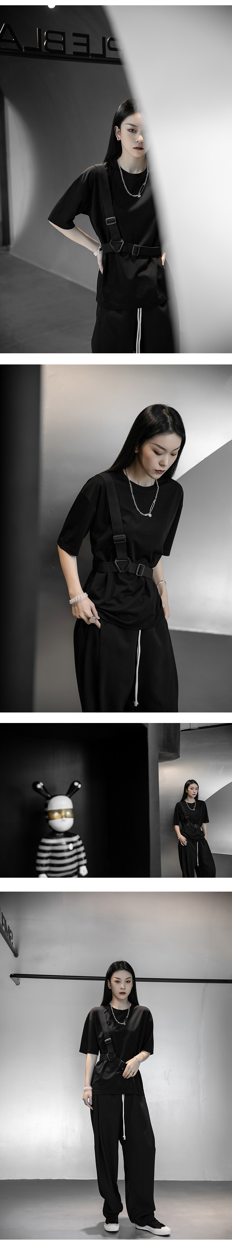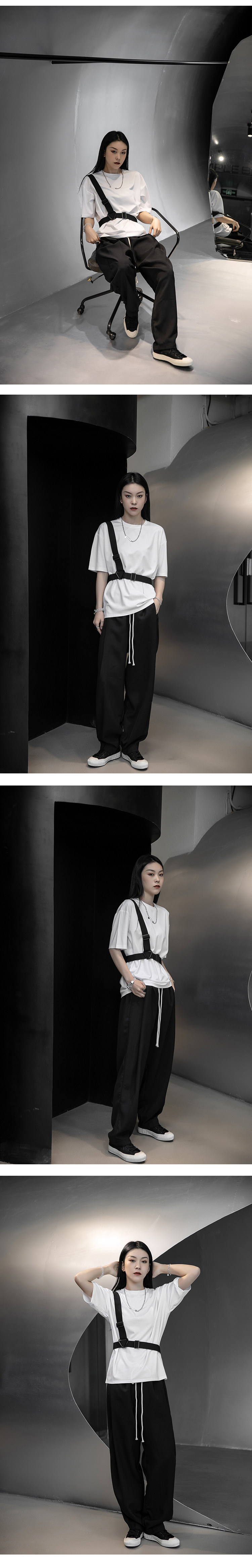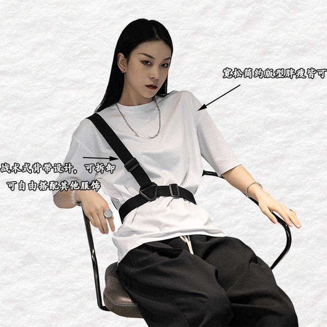 Летние тактические подтяжки, футболка с коротким рукавом, оверсайз