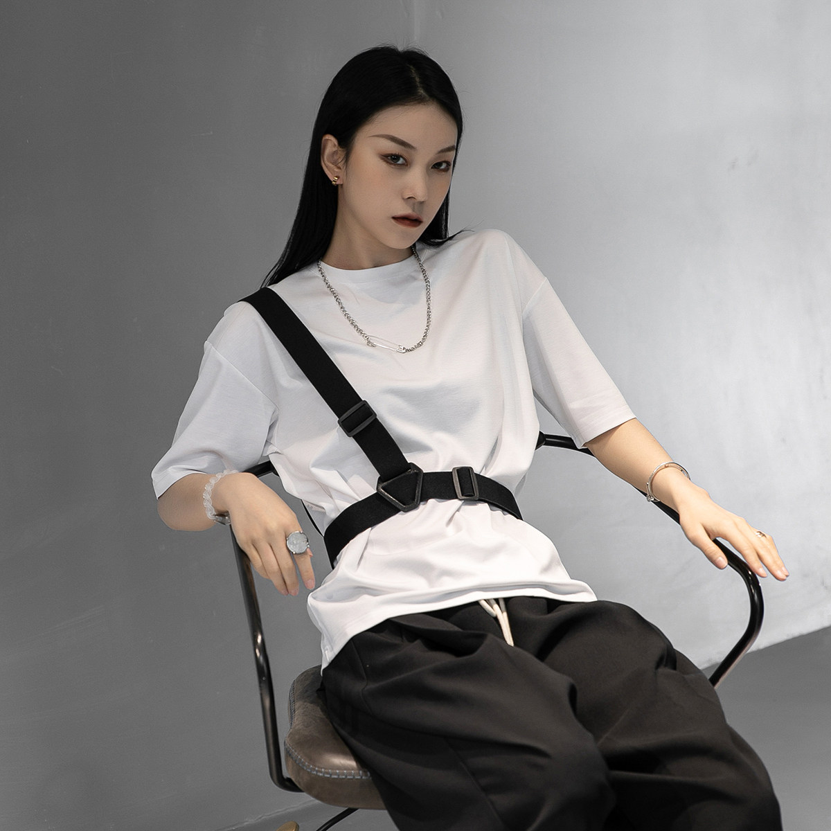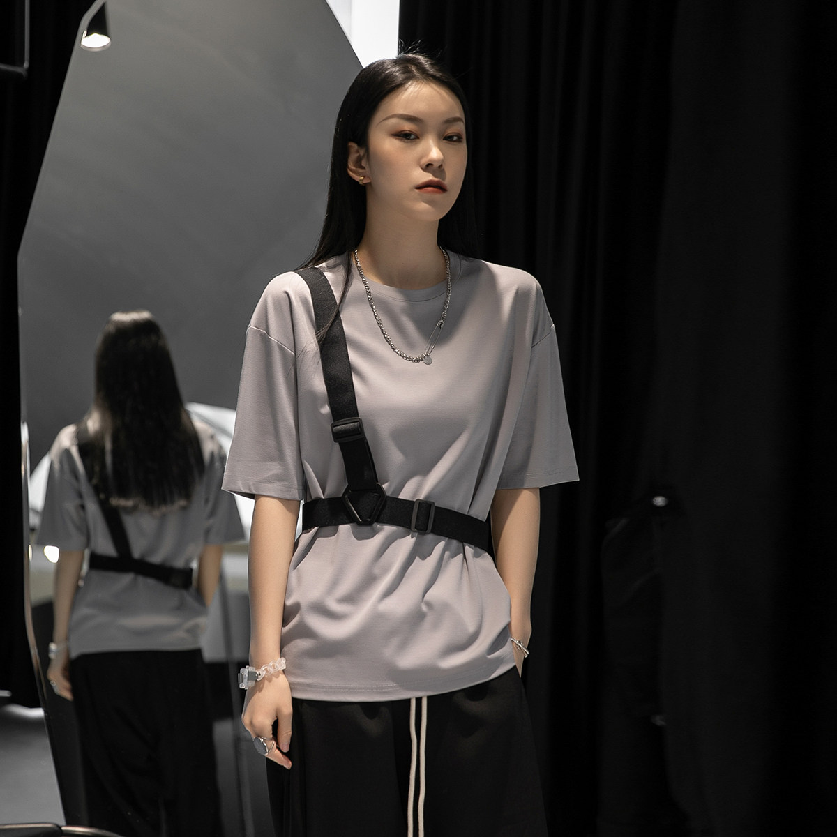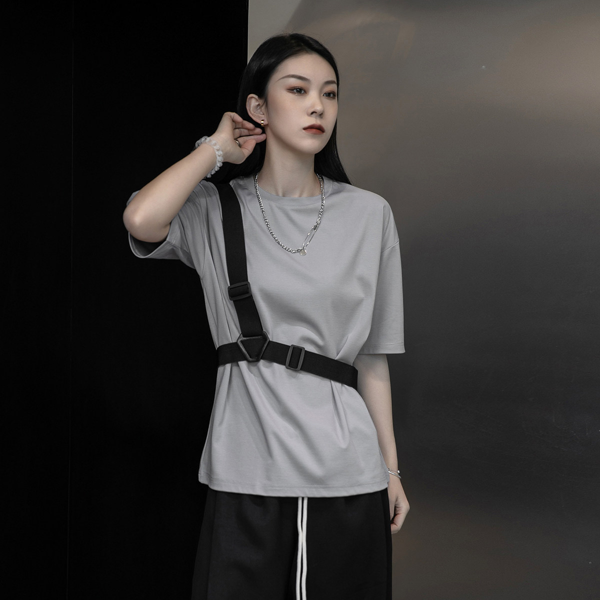 Летние тактические подтяжки, футболка с коротким рукавом, оверсайз