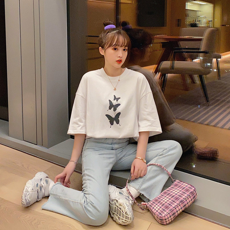 Летняя брендовая футболка для школьников, короткий рукав, в корейском стиле, популярно в интернете