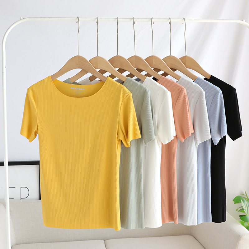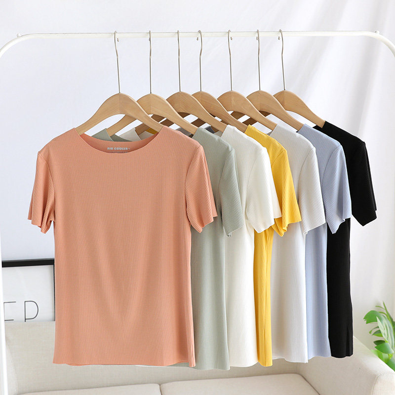 Летняя базовая приятная телу тонкая футболка с коротким рукавом, сшита из модала, облегающий крой