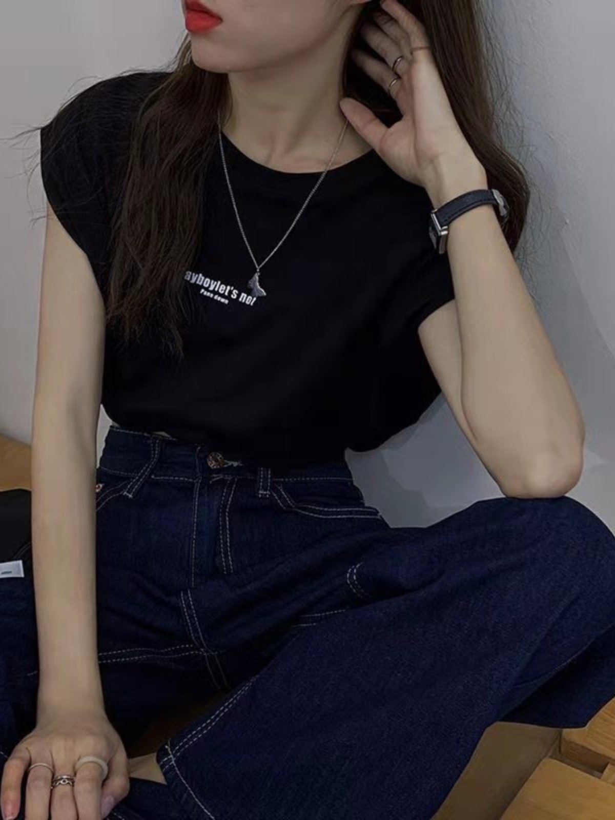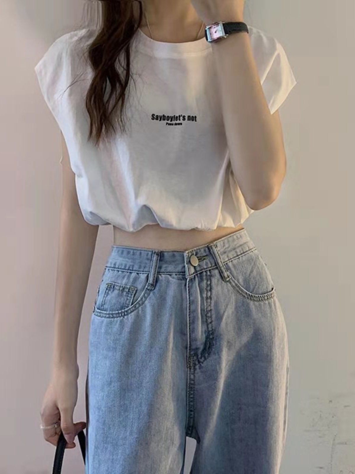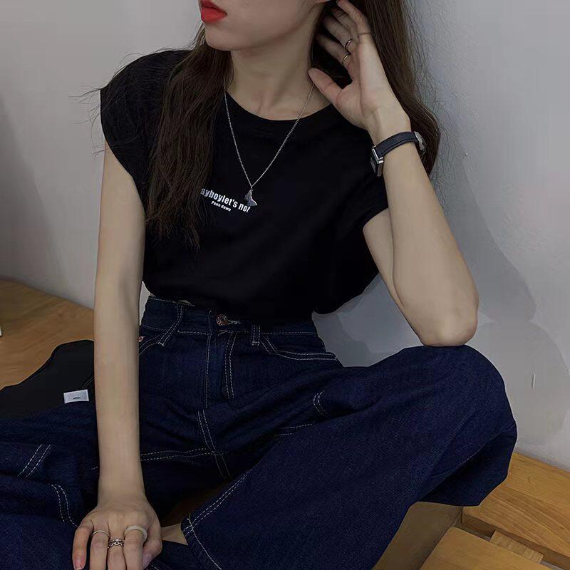 Короткая футболка без рукавов с круглым воротником, брендовый жилет