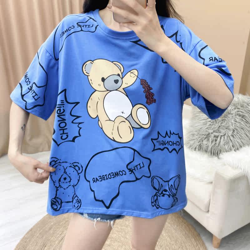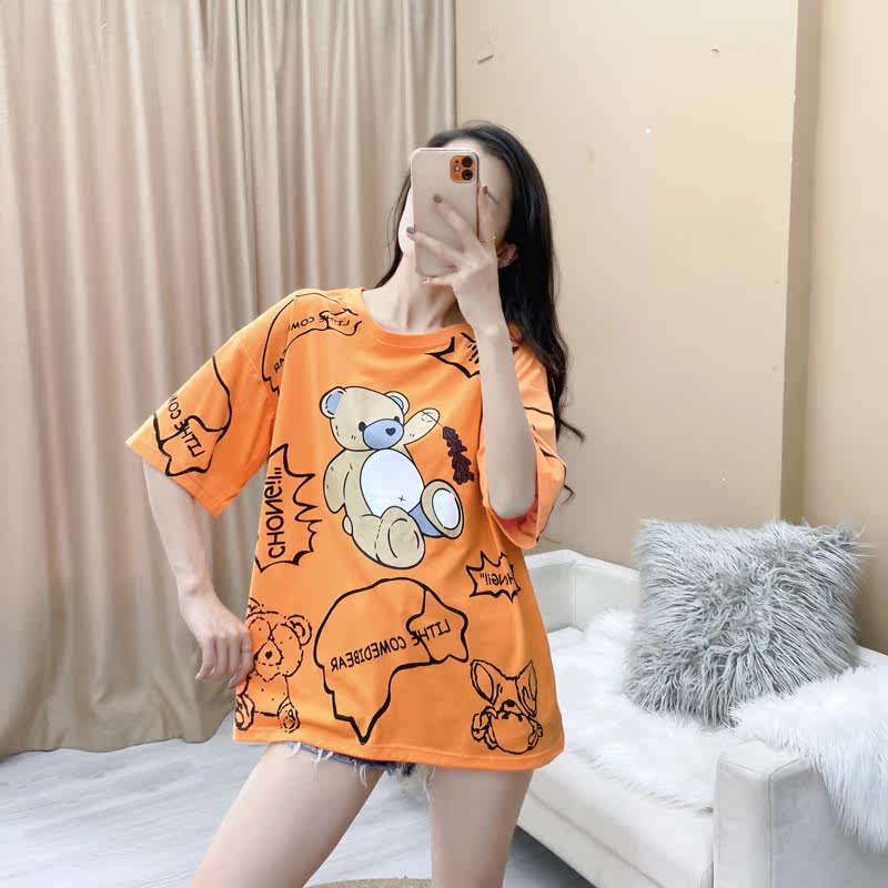 Tide, оранжевая летняя сексуальная футболка с коротким рукавом для школьников, с медвежатами, 2021 года