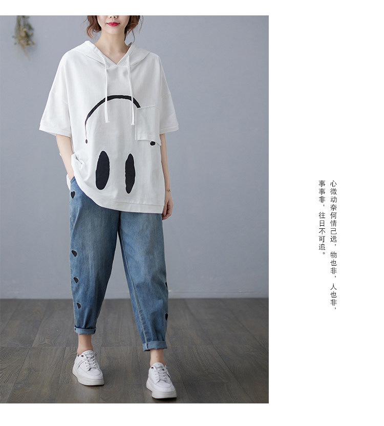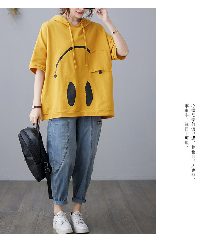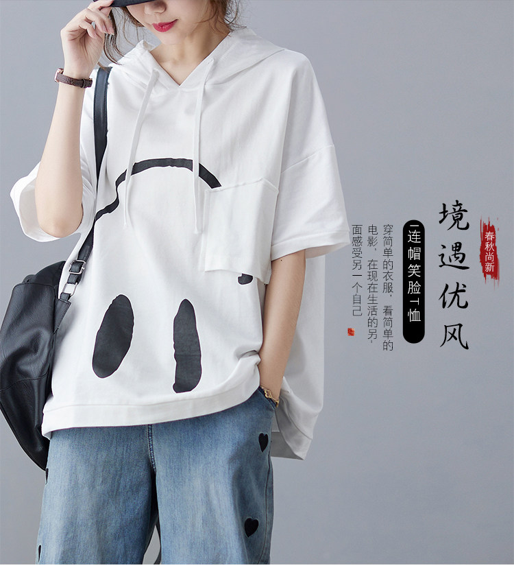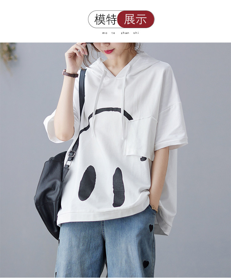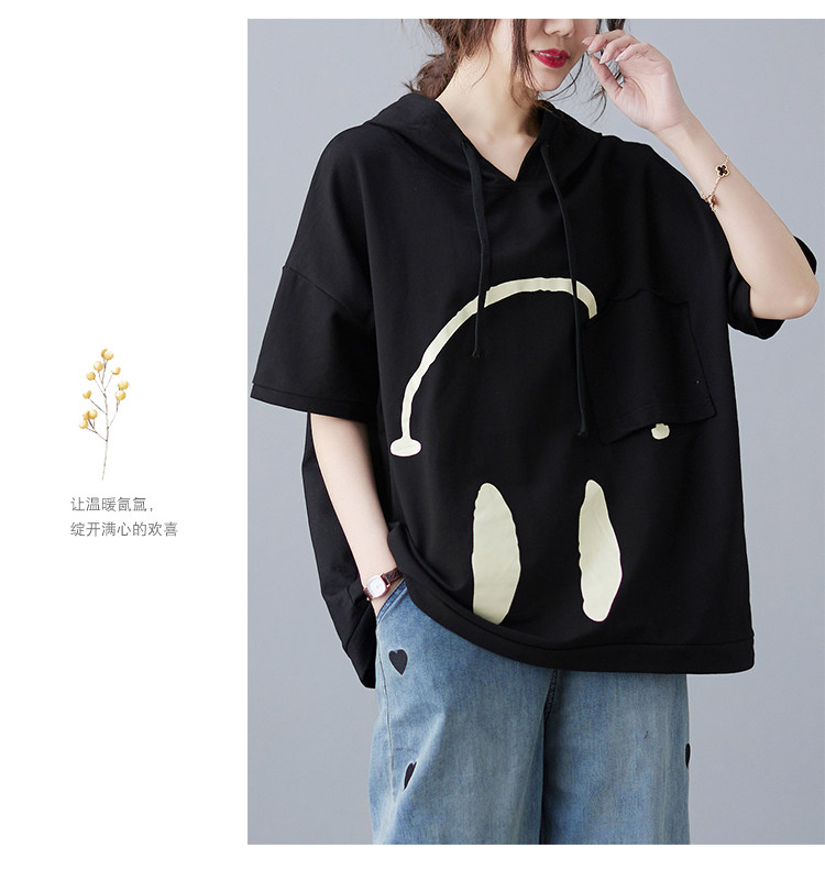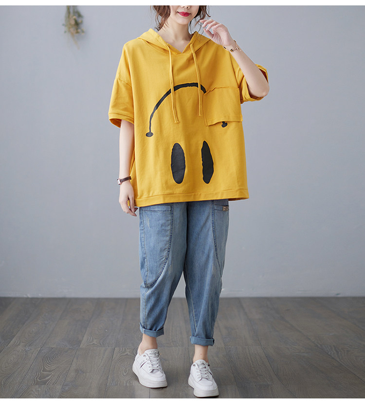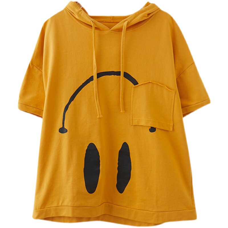 Весенняя летняя хлопковая футболка с капюшоном, размер, оверсайз