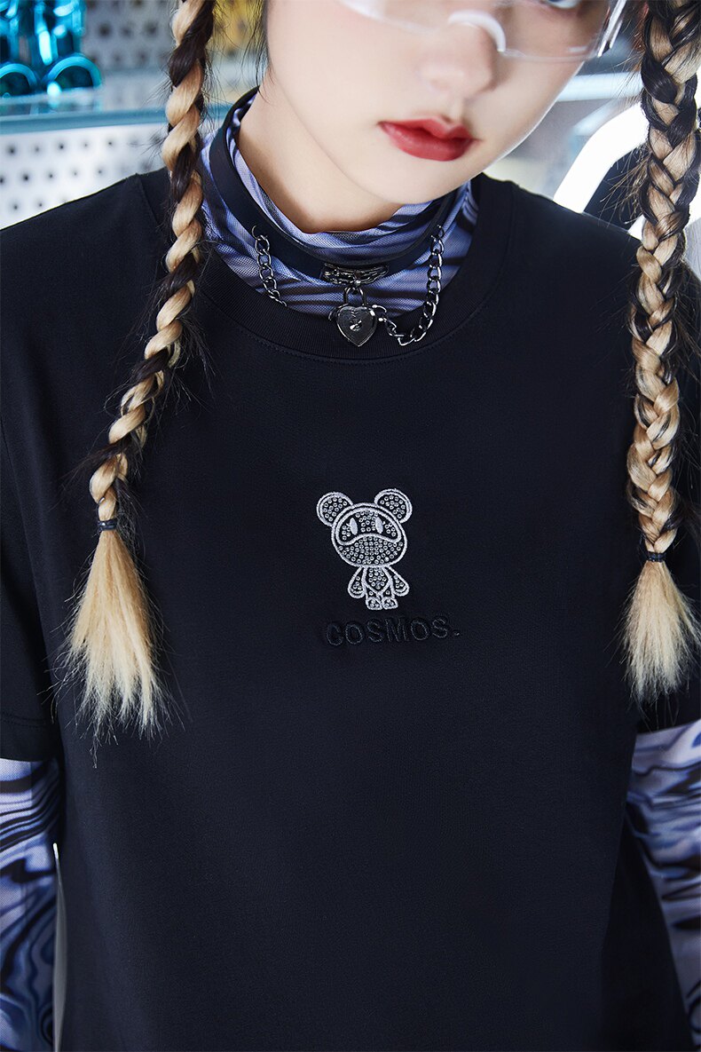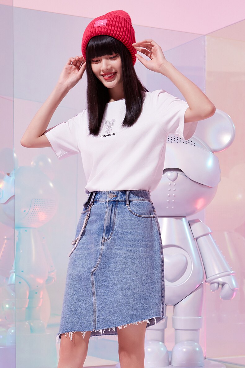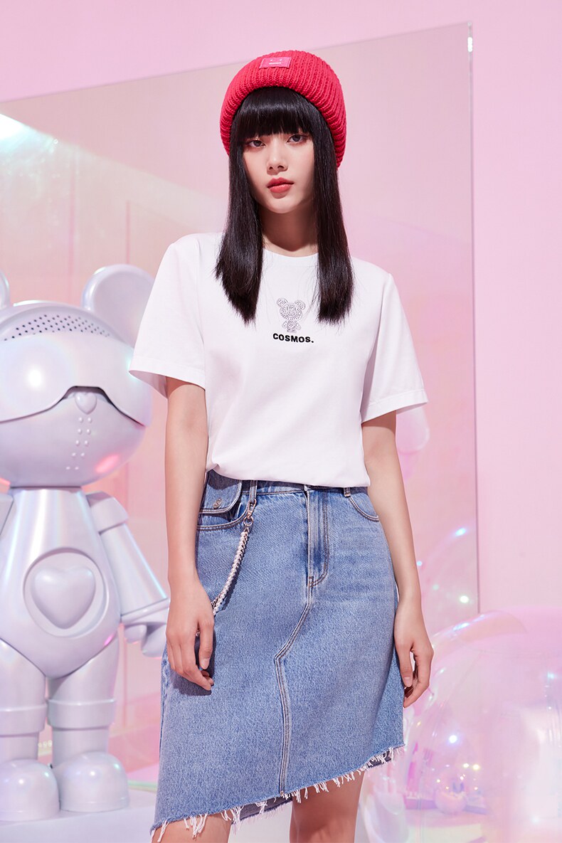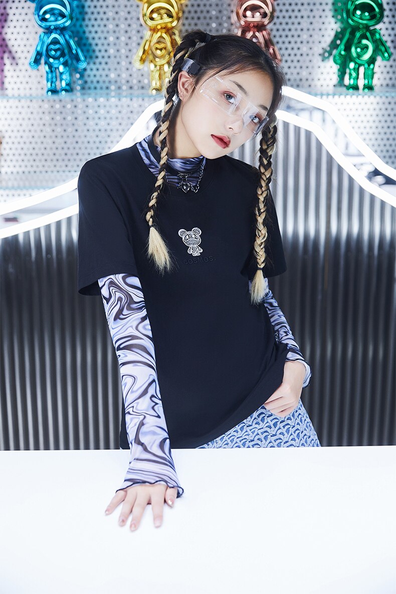 Летняя одежда, футболка с коротким рукавом, коллекция 2021, свободный крой, с вышивкой