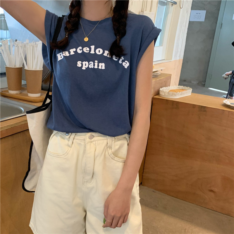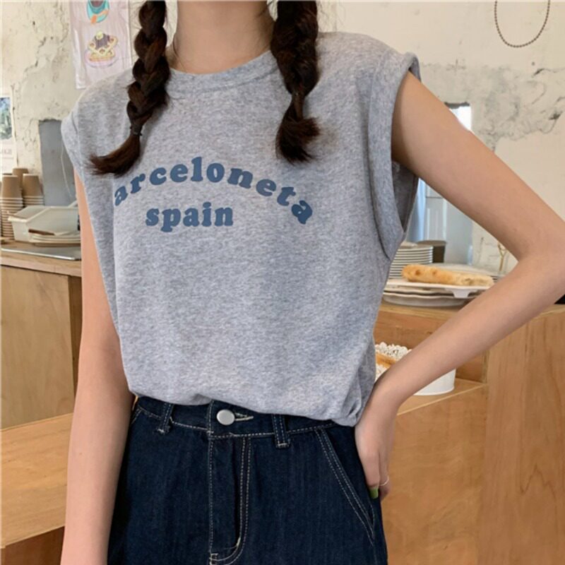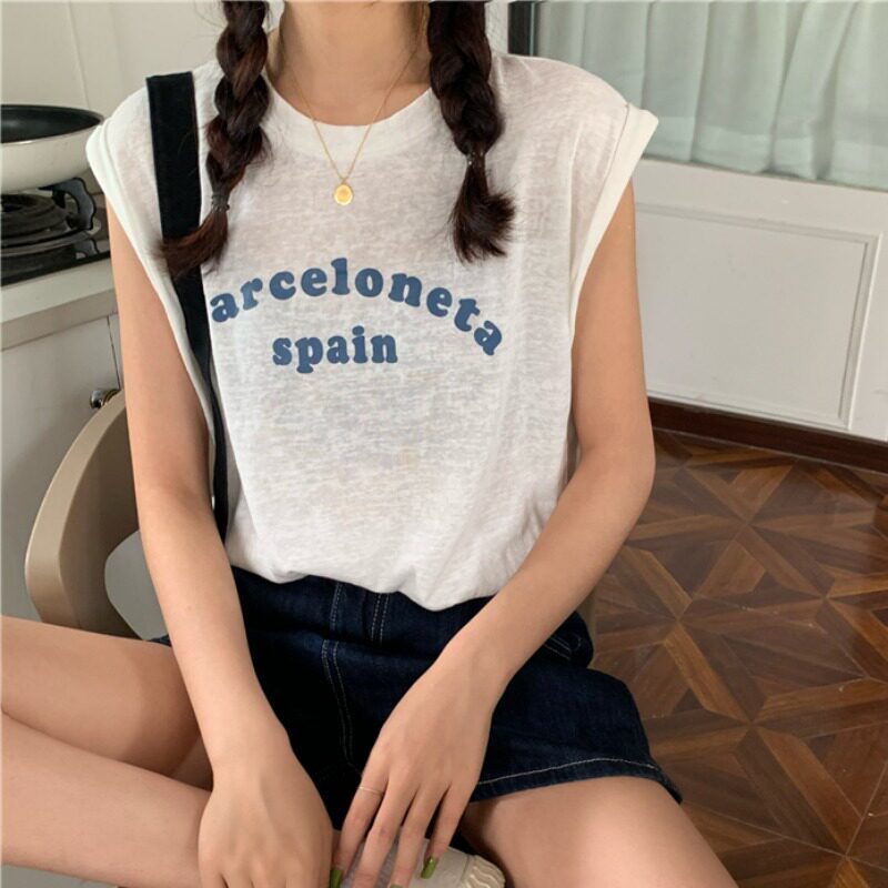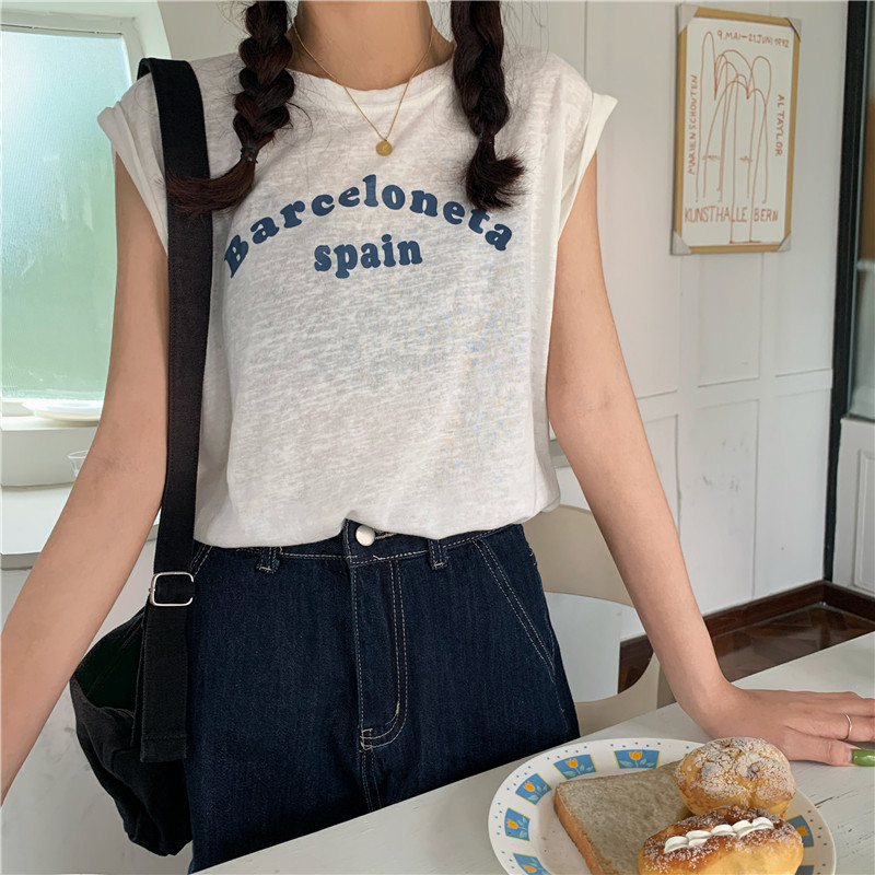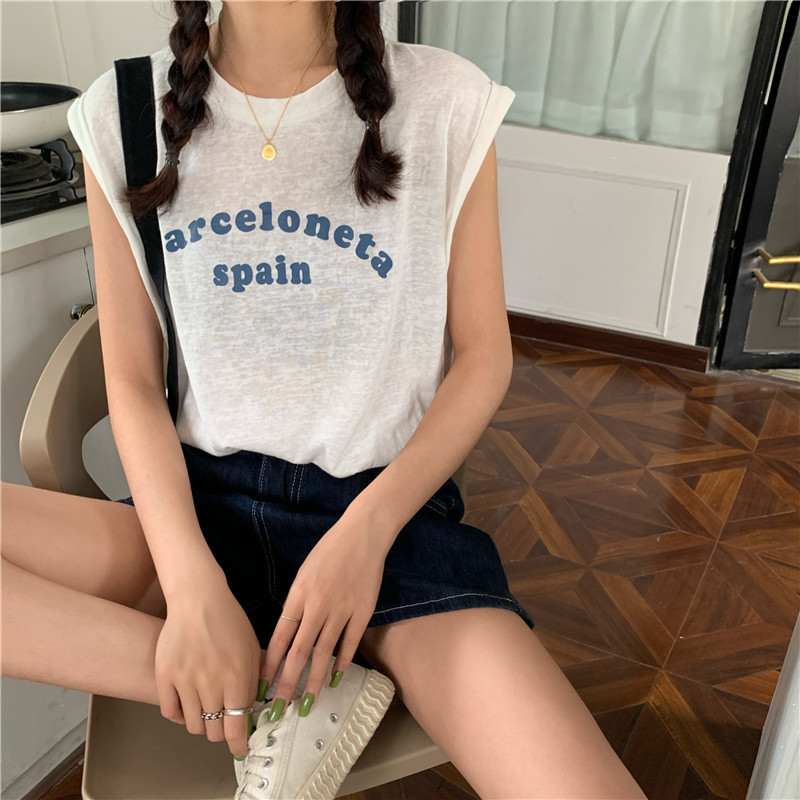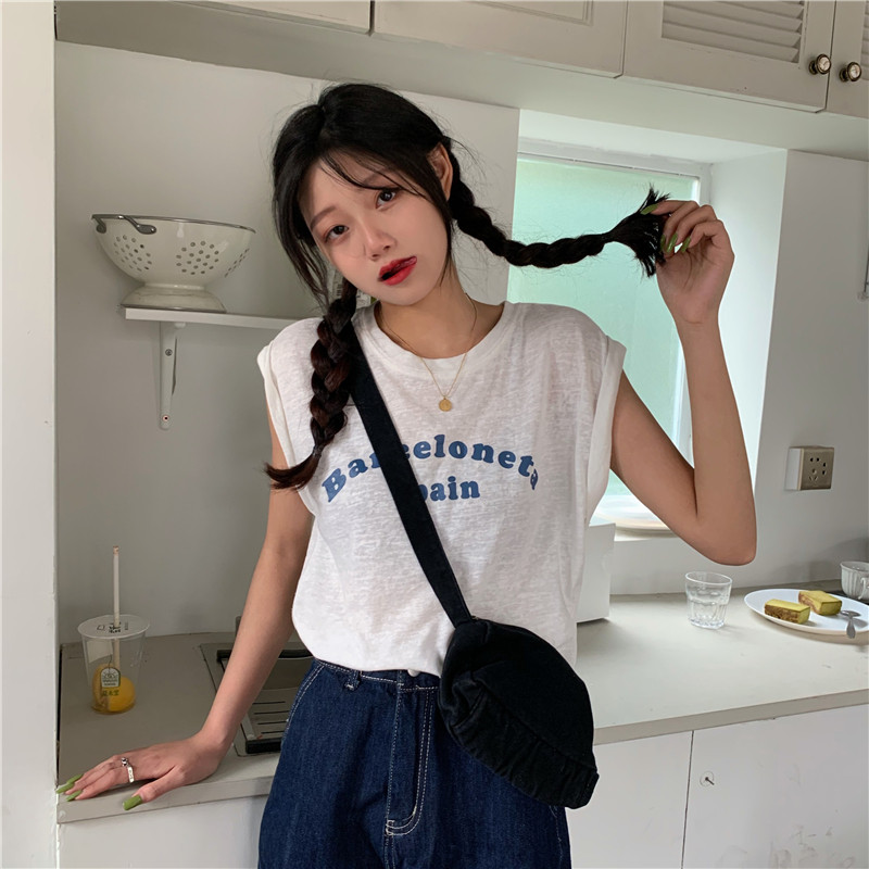 Белая футболка без рукавов для школьников и студентов, жилет с круглым воротником, оверсайз