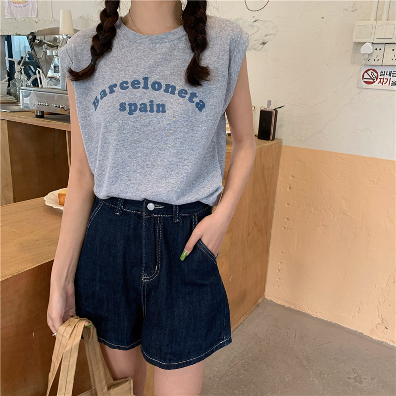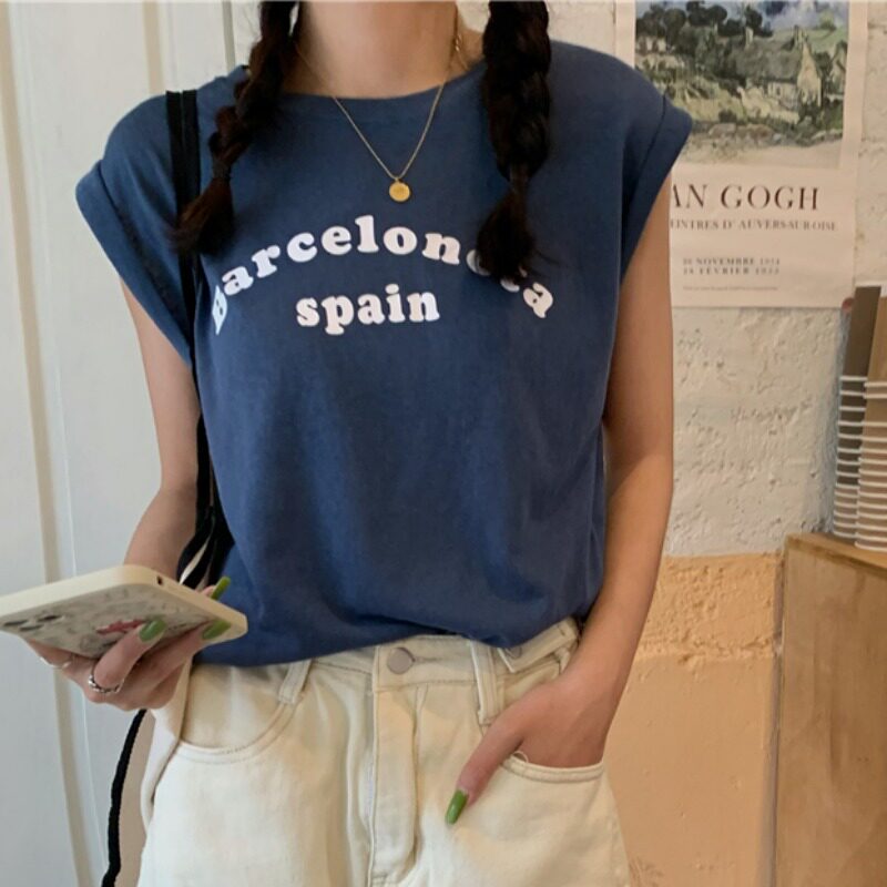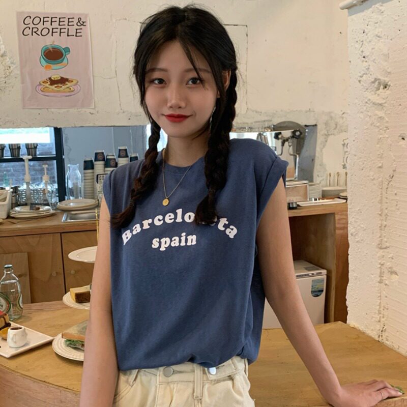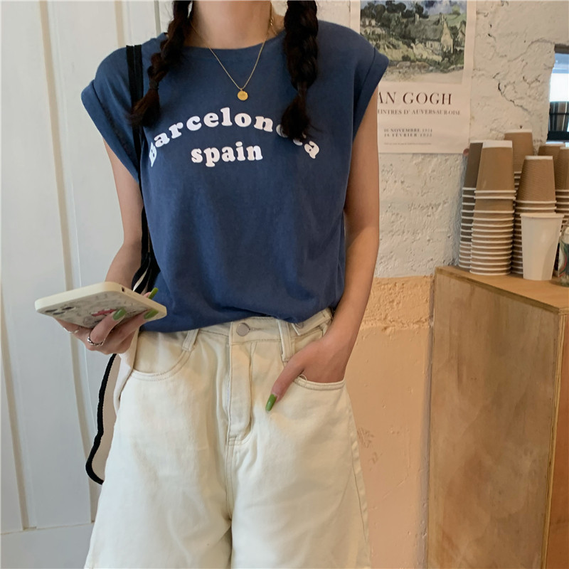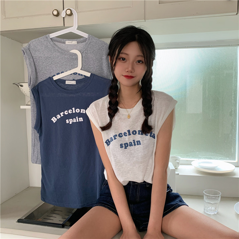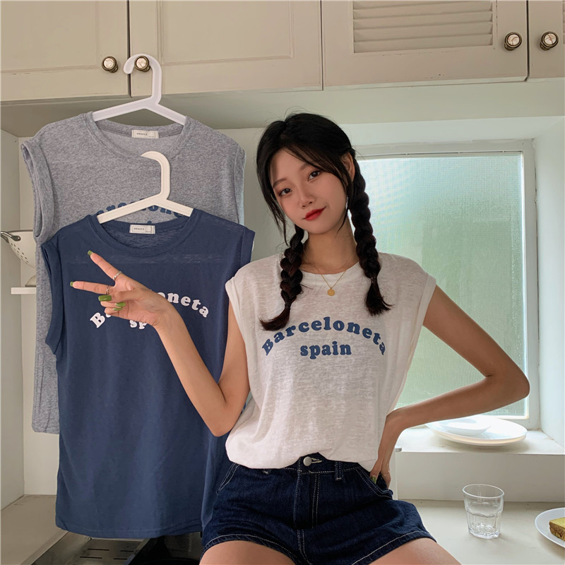 Белая футболка без рукавов для школьников и студентов, жилет с круглым воротником, оверсайз