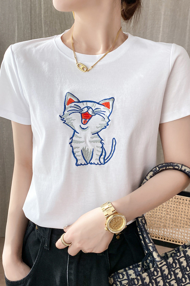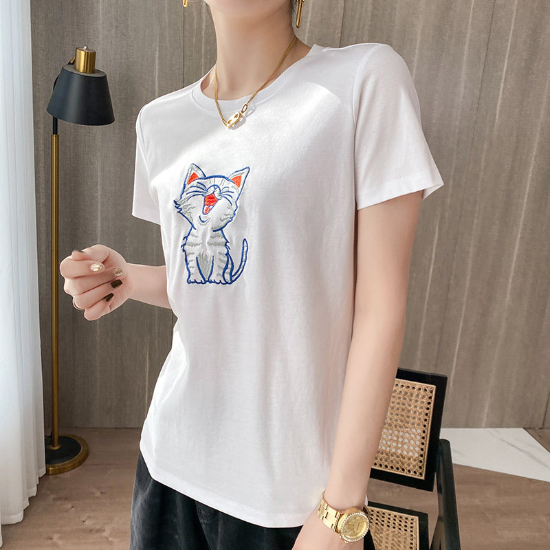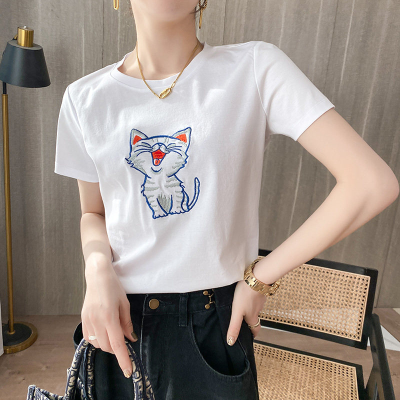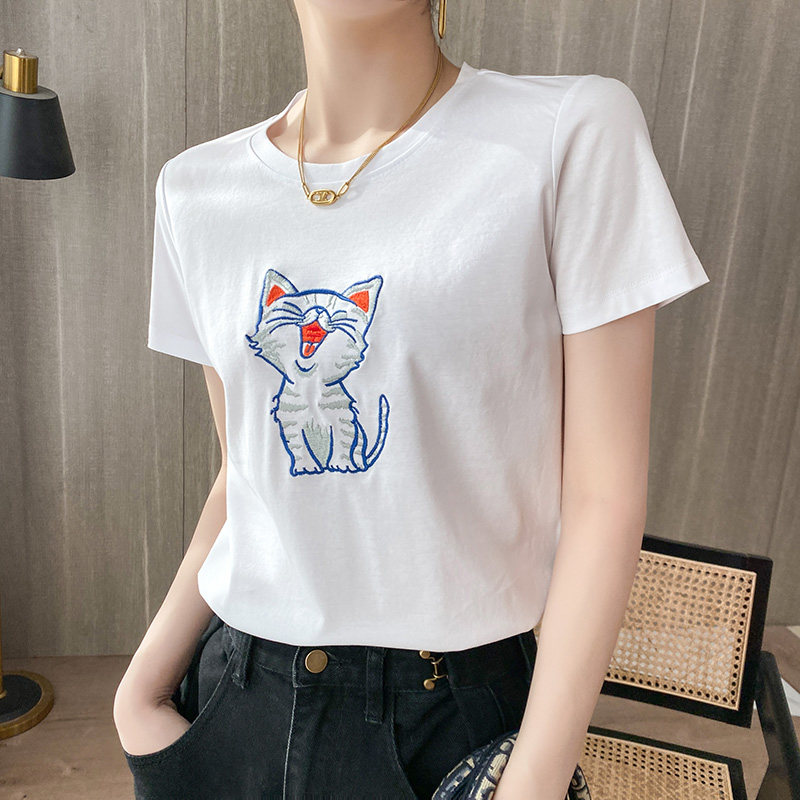 Летняя хлопковая футболка, сезон 2021, с вышивкой, короткий рукав, оверсайз
