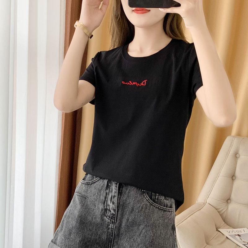 Двусторонная хлопковая летняя футболка с коротким рукавом с круглым воротником, с вышивкой, оверсайз