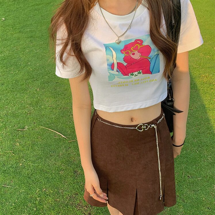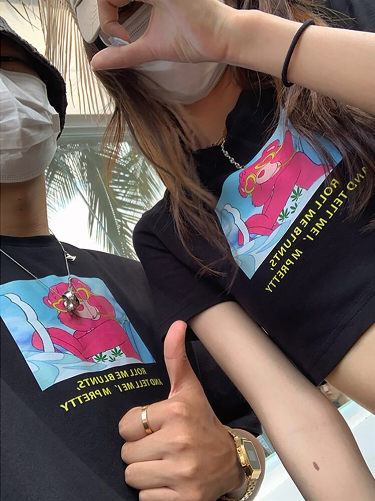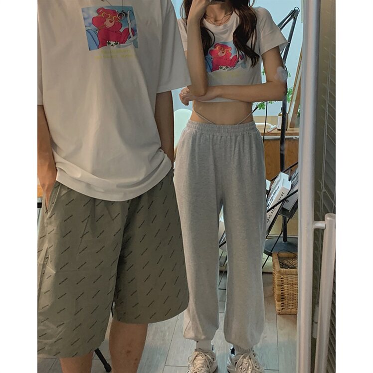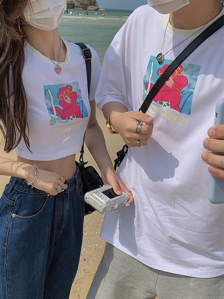 Летняя парная одежда для влюбленных, брендовая короткая футболка с коротким рукавом, коллекция 2021, в корейском стиле, популярно в интернете, высокая талия