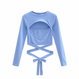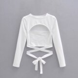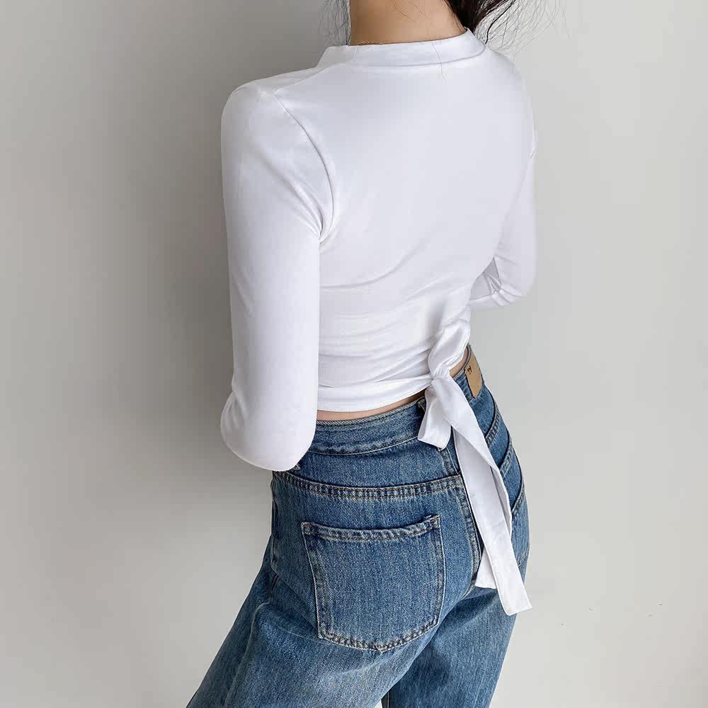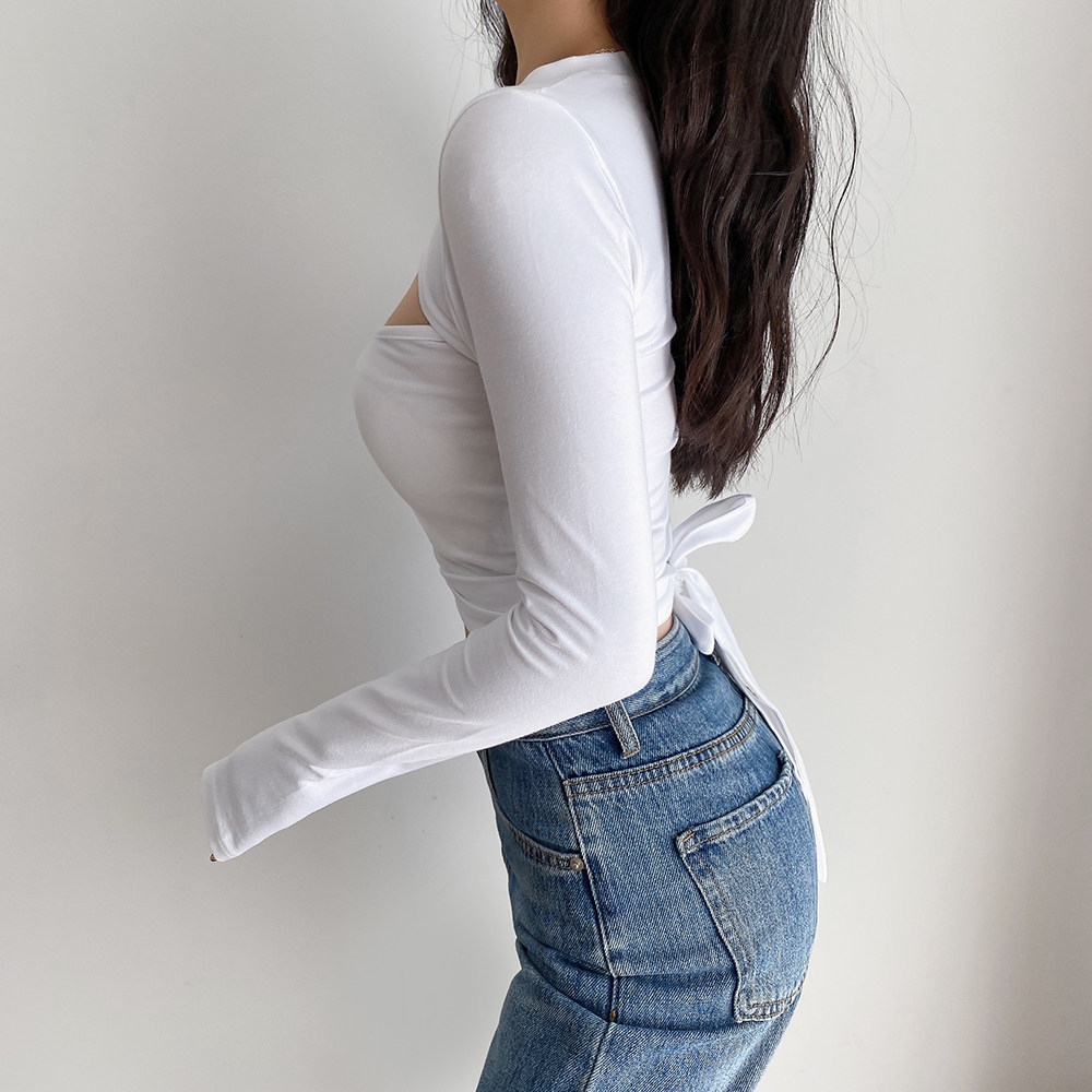 Летний сексуальный комплект с бантиком, ремень, короткий лонгслив, приталенная футболка, европейский стиль