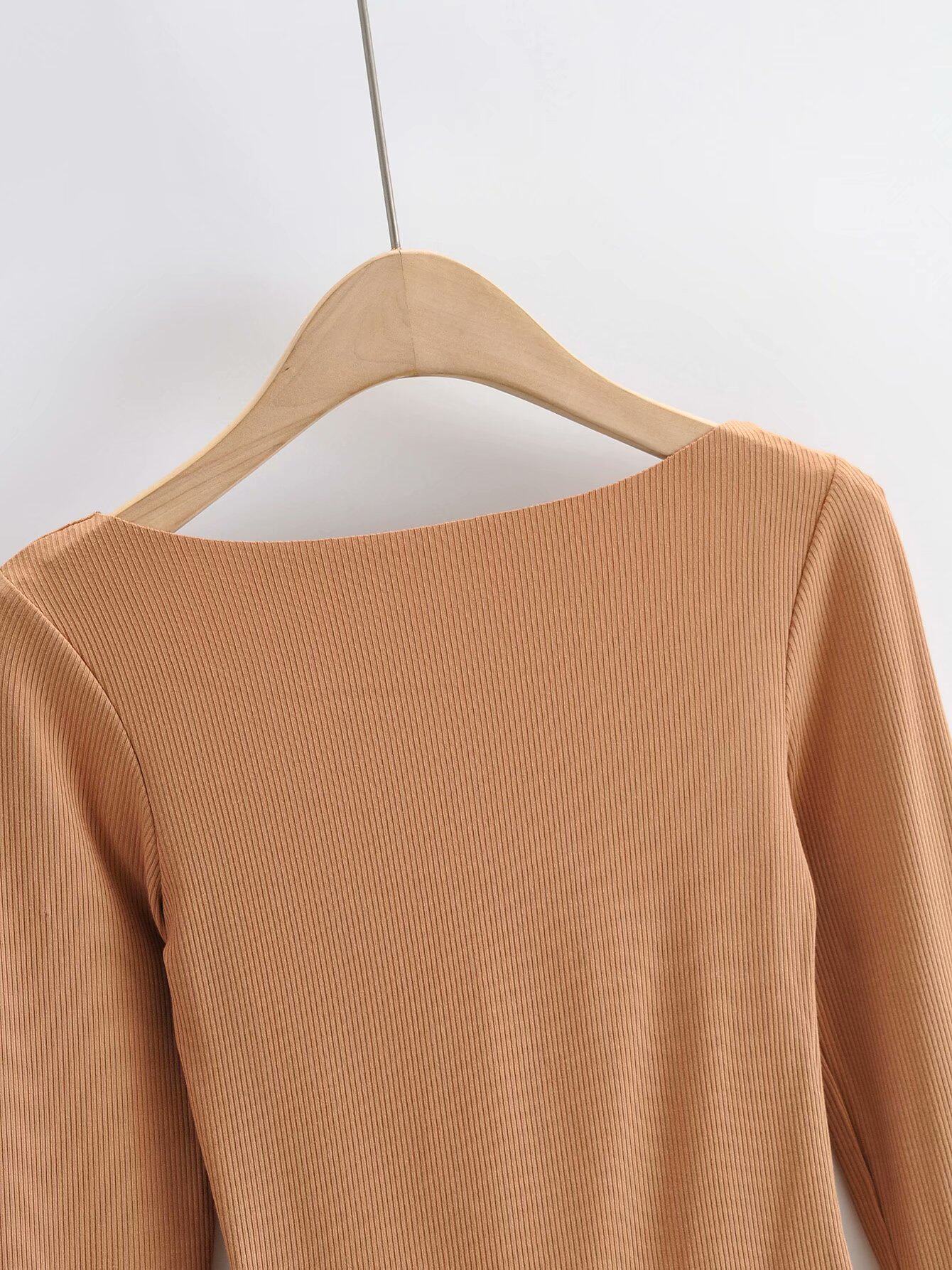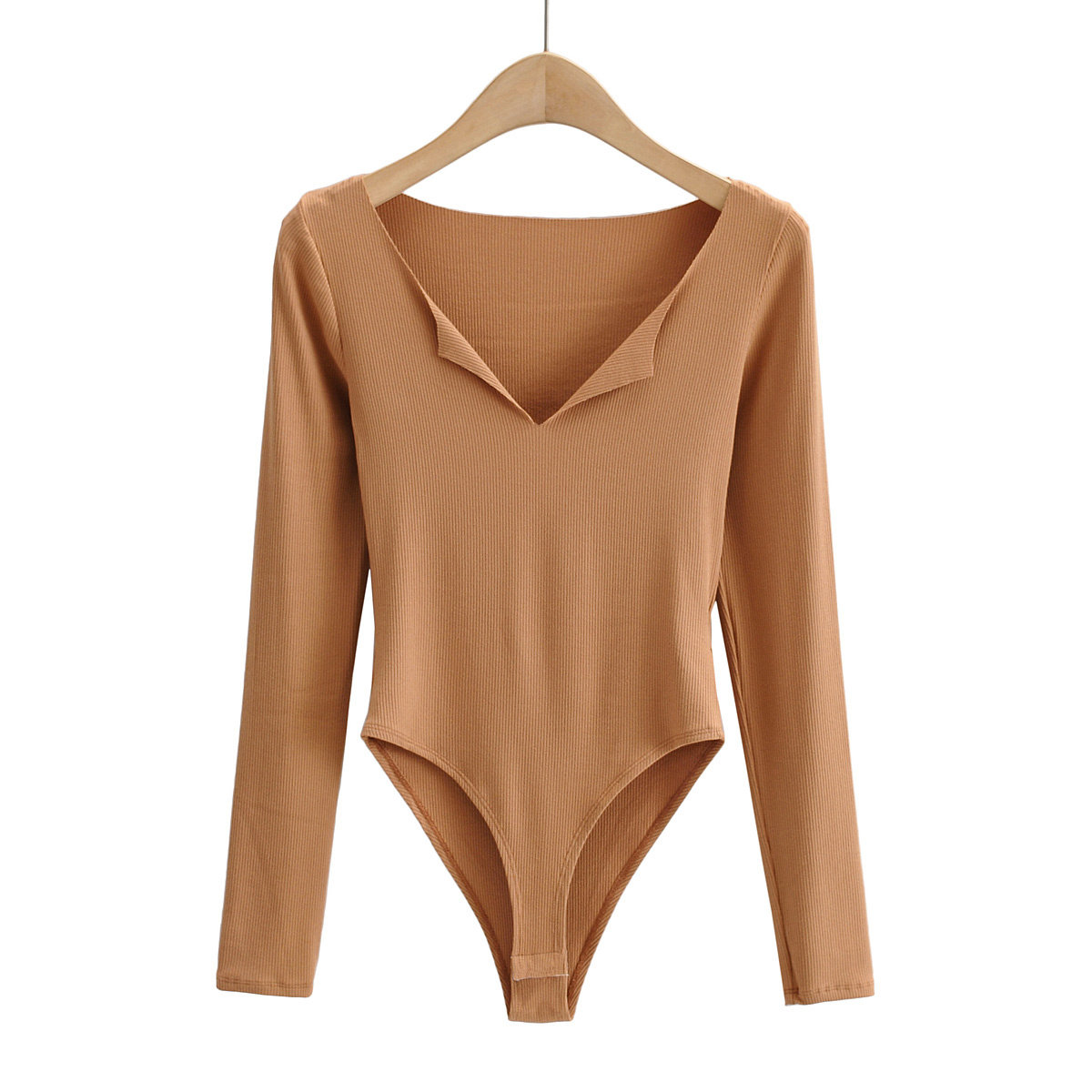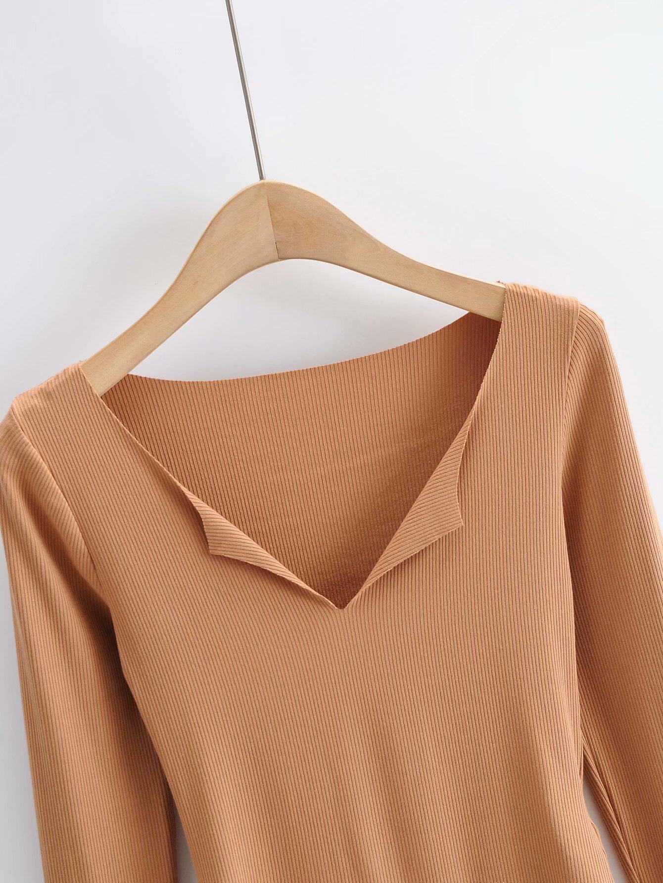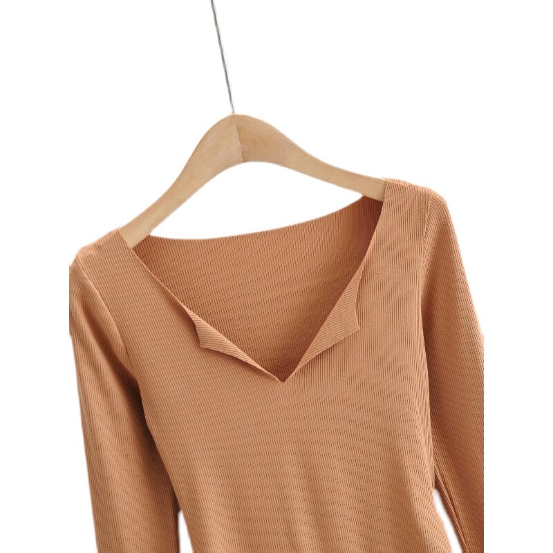 Лонгслив, боди, эластичная базовая приятная телу футболка, европейский стиль, V-образный вырез