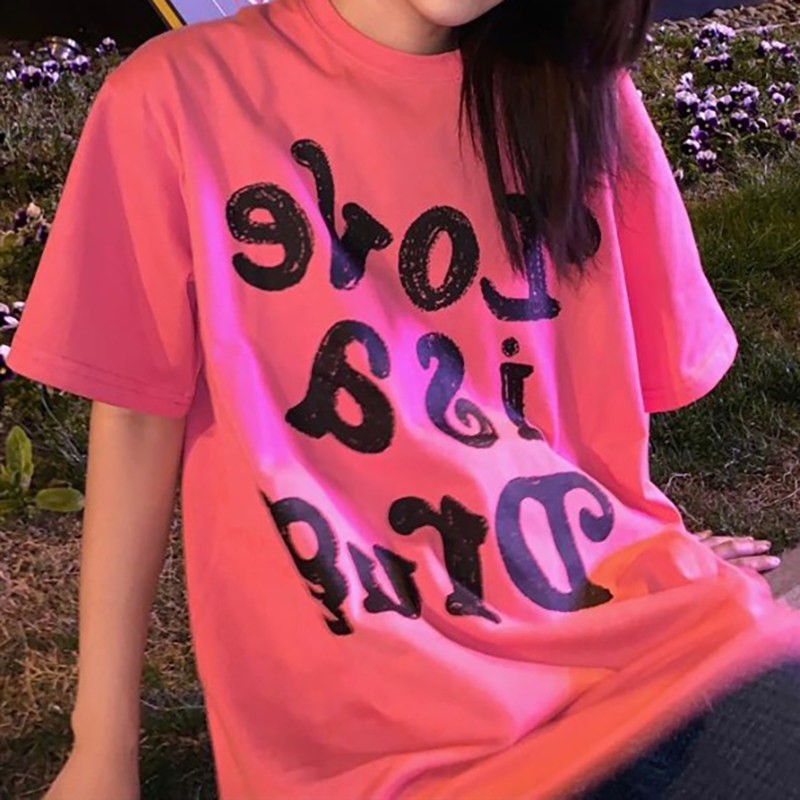 Tide, розовая летняя футболка, оверсайз, в корейском стиле