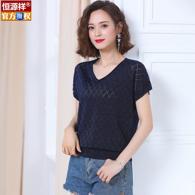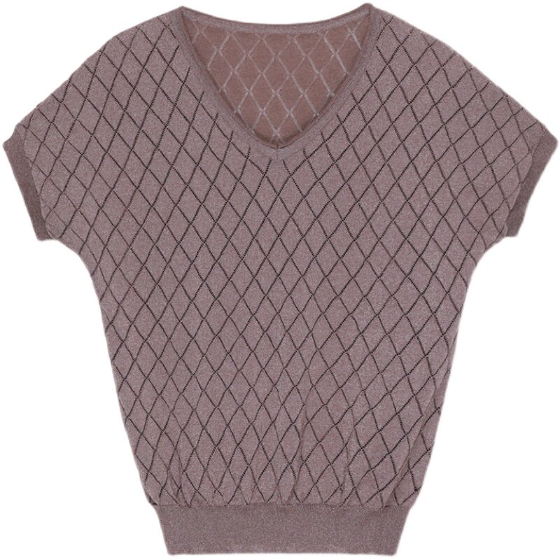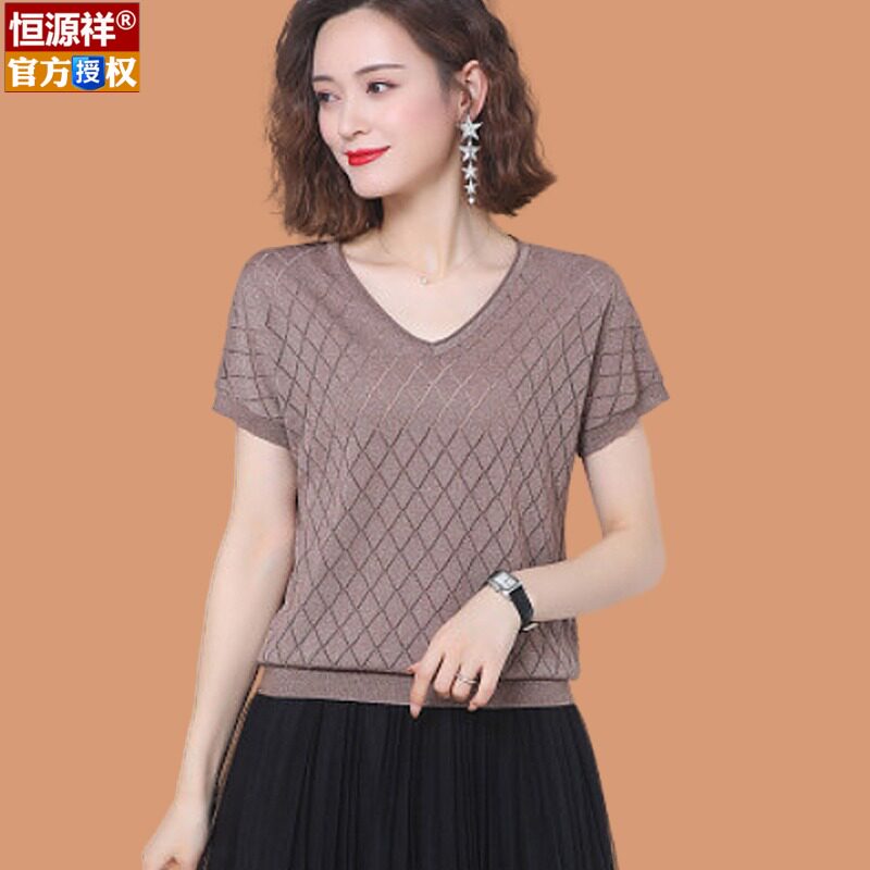 Шелковая футболка, летняя летняя одежда, тонкий трикотажный свитер, коллекция 2023, V-образный вырез