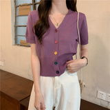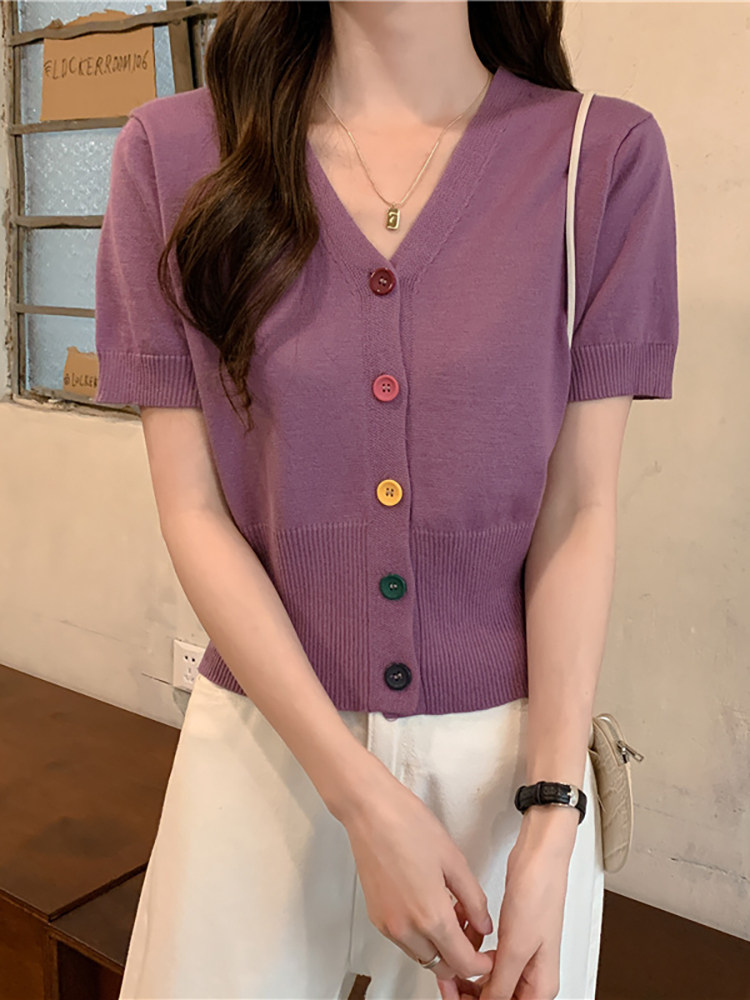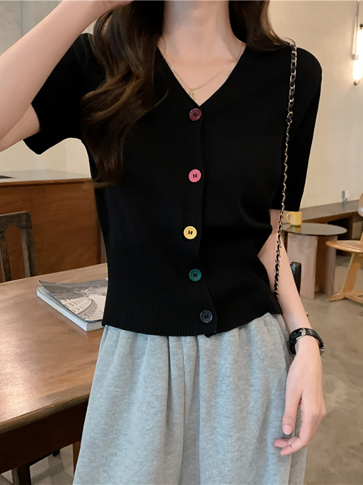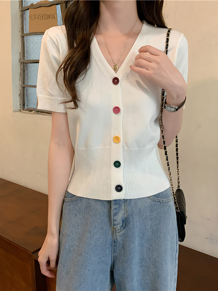 Короткий кардиган, дизайнерские штаны, летняя футболка с коротким рукавом, V-образный вырез, высокая талия, тренд сезона, коллекция 2023