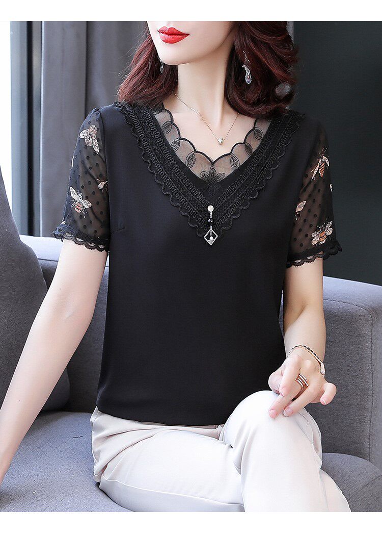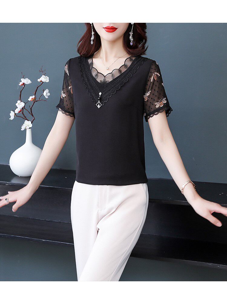 Осенняя летняя шифоновая приятная телу футболка с коротким рукавом, 2021 года