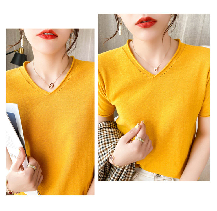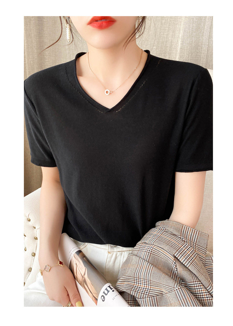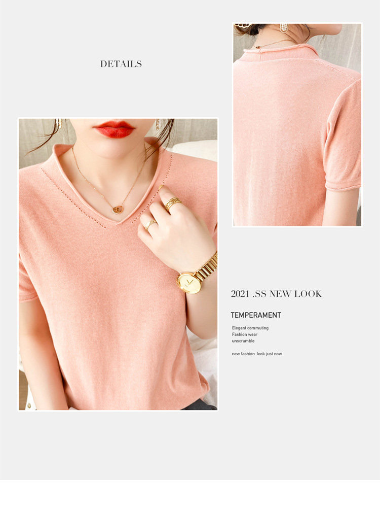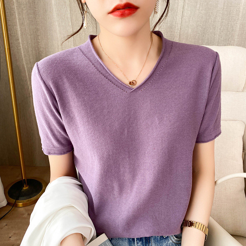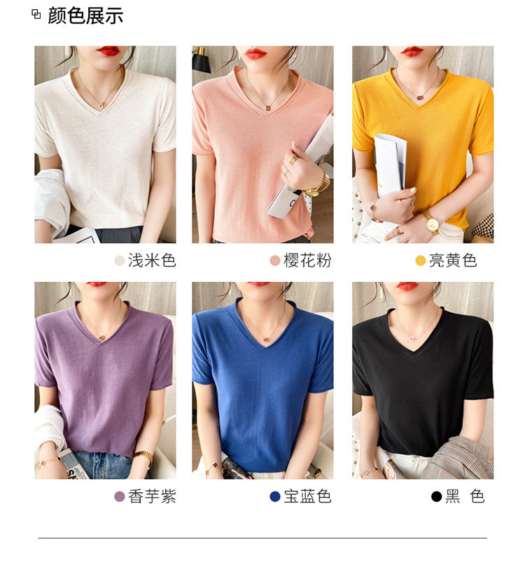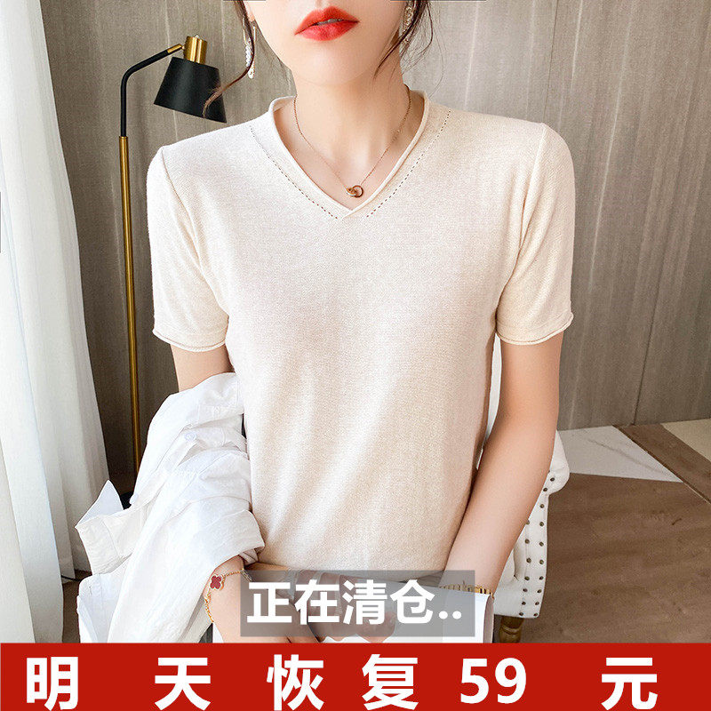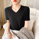 Летняя хлопковая летняя одежда, трикотажная футболка, 2021 года, V-образный вырез, короткий рукав, оверсайз
