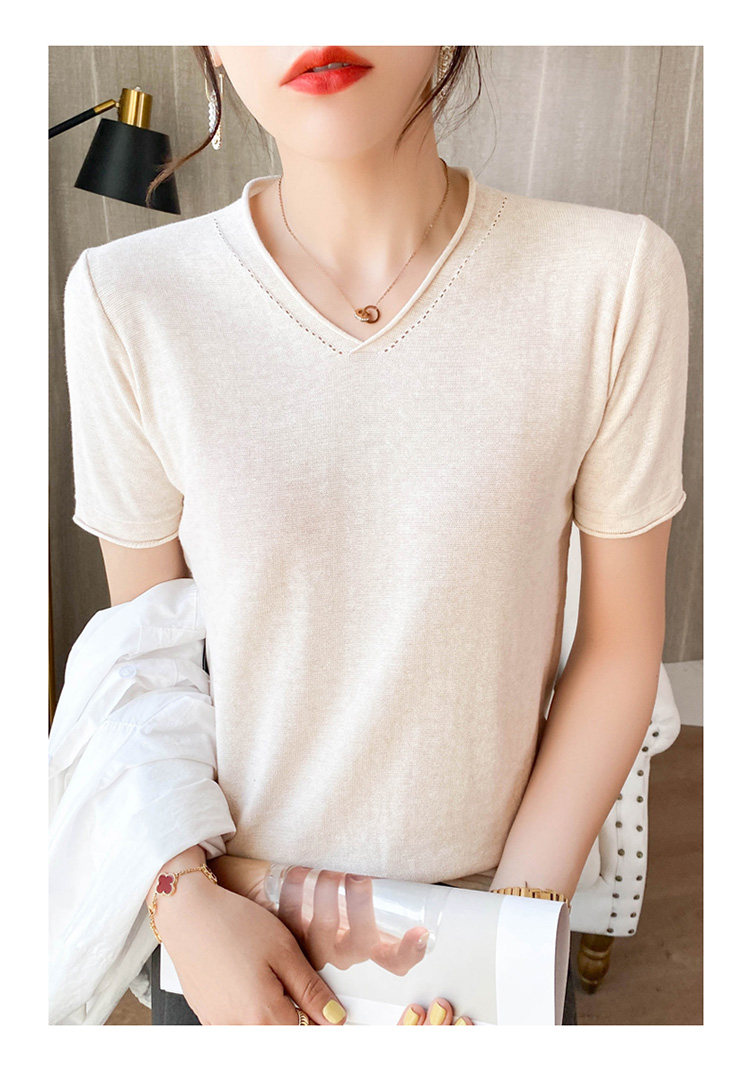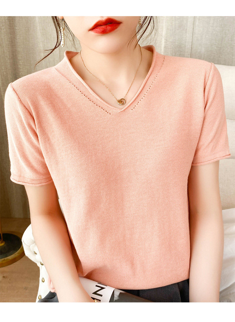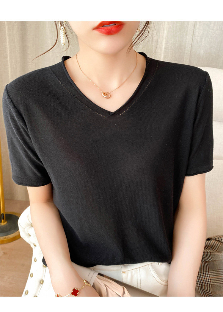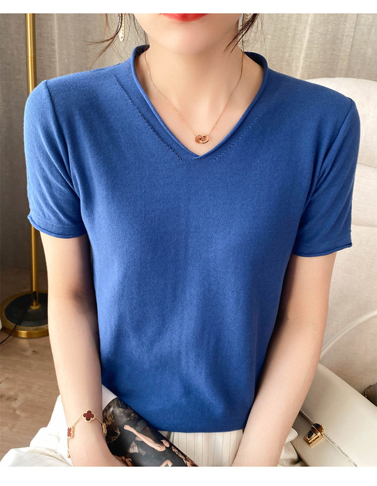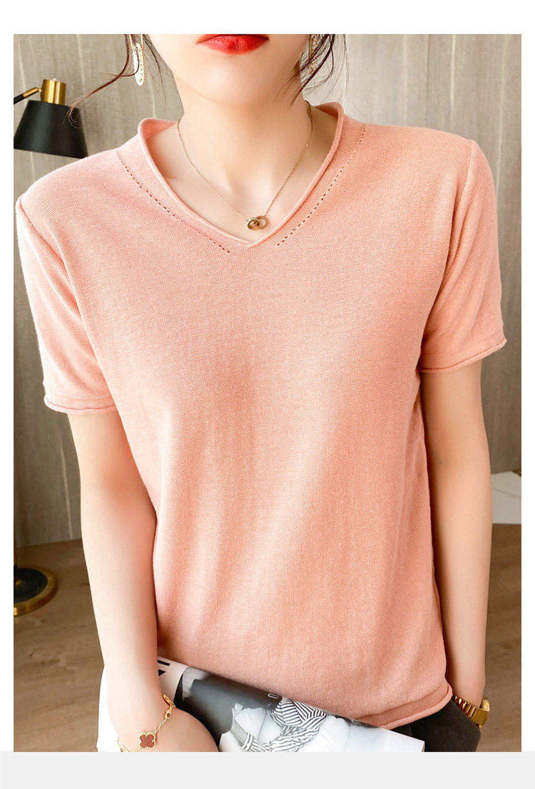 Летняя хлопковая летняя одежда, трикотажная футболка, 2021 года, V-образный вырез, короткий рукав, оверсайз
