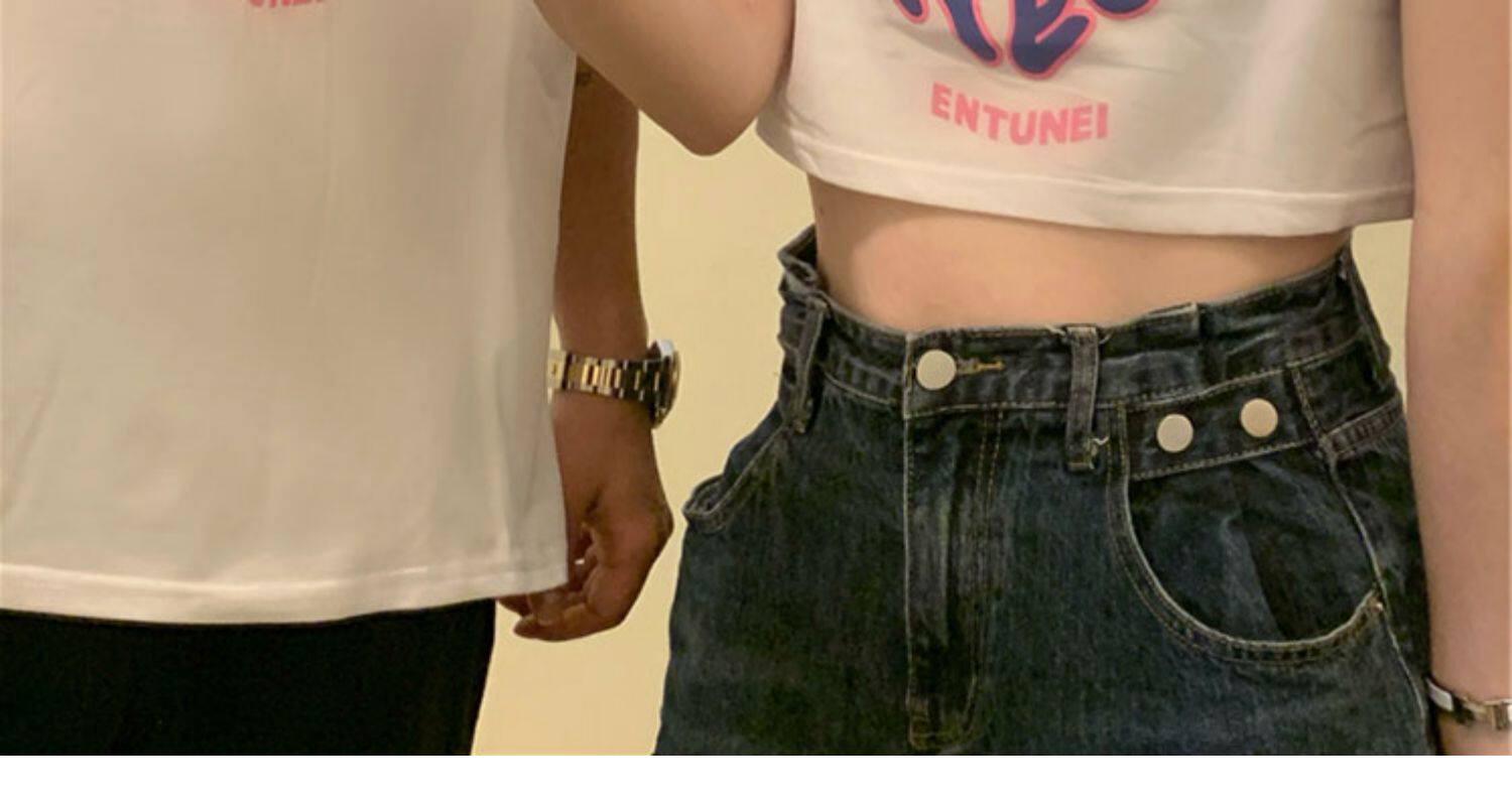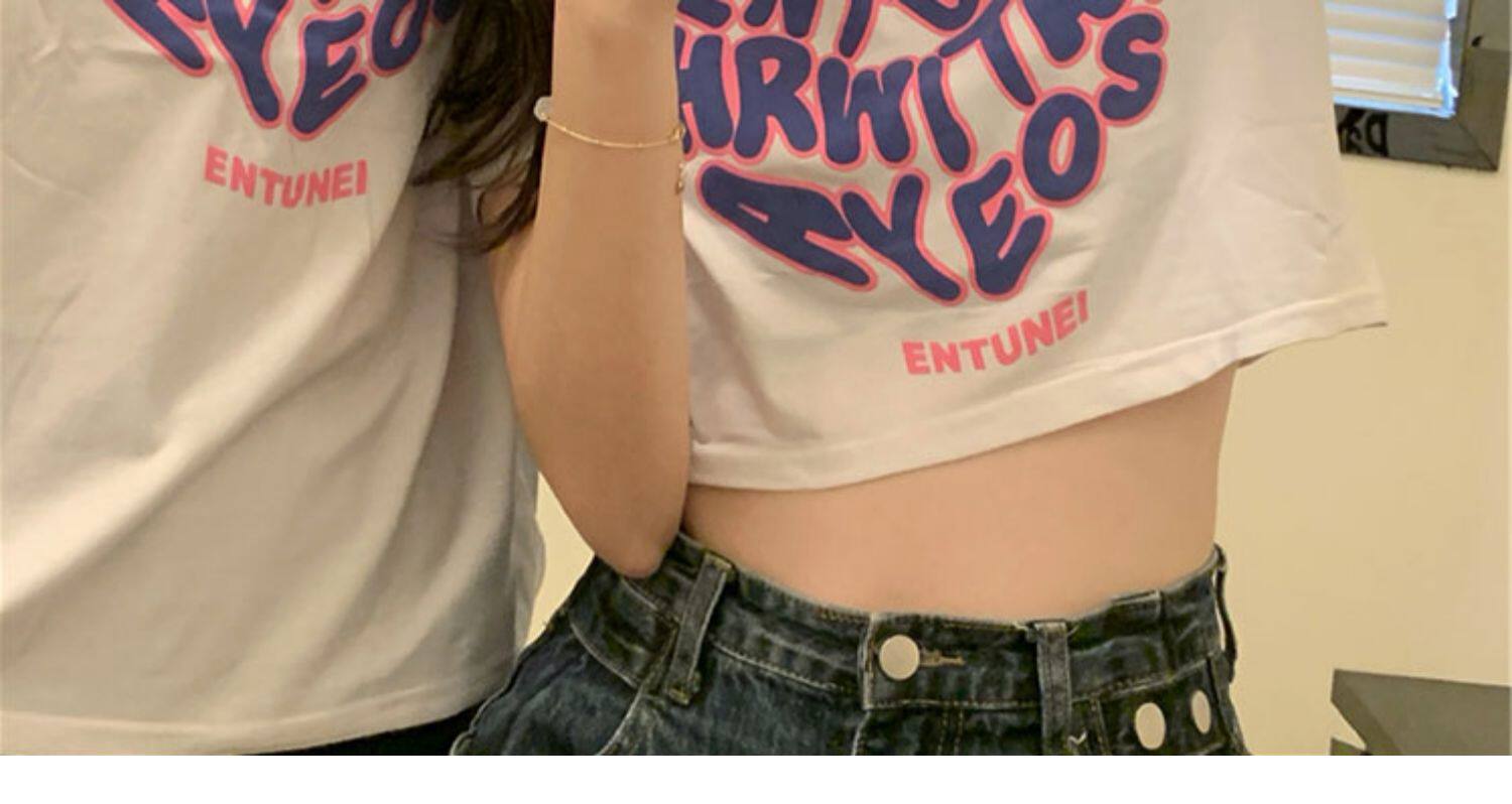 Tide, парная одежда для влюбленных, летняя сексуальная короткая футболка с коротким рукавом, свободный крой, высокая талия