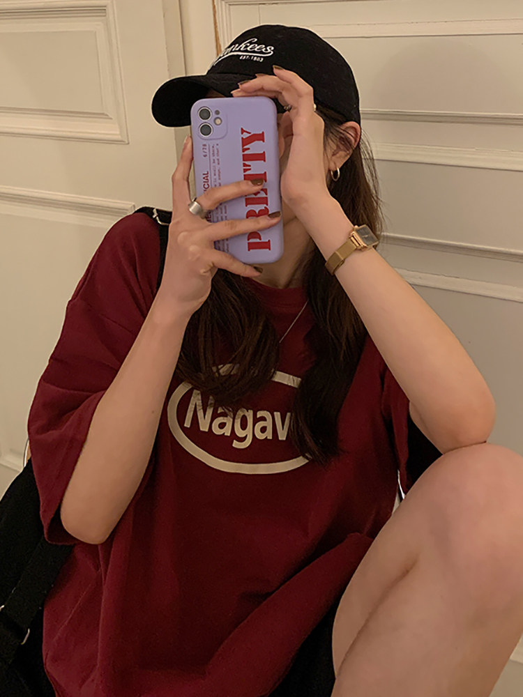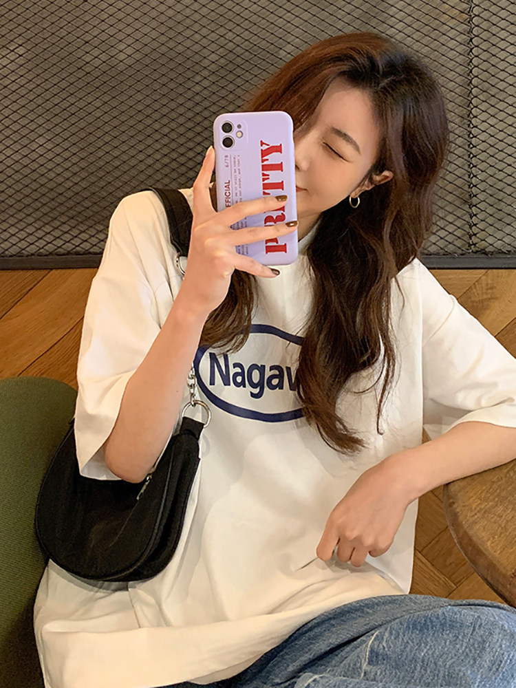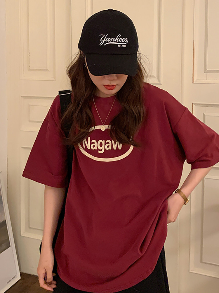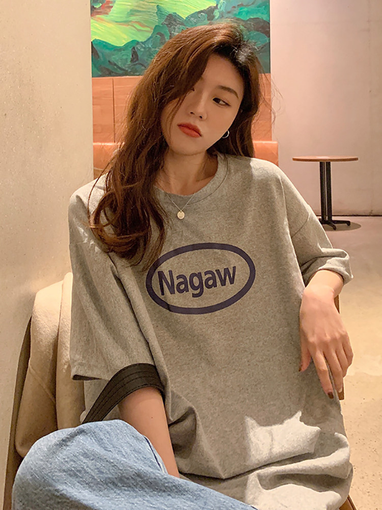 Летняя длинная футболка, короткий рукав, свободный крой, 2024 года, в американском стиле, средней длины