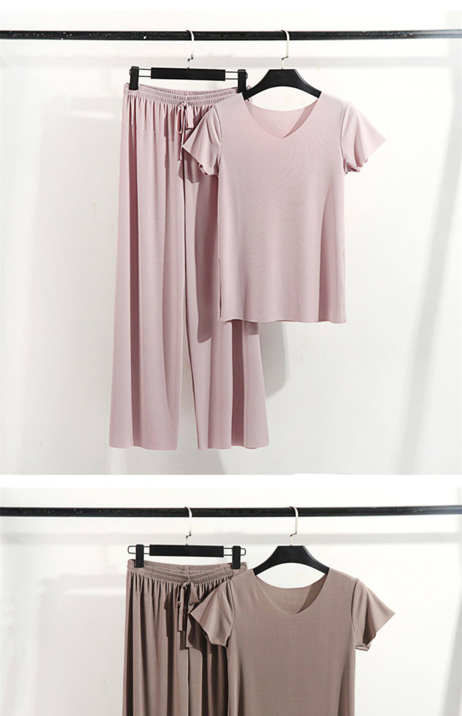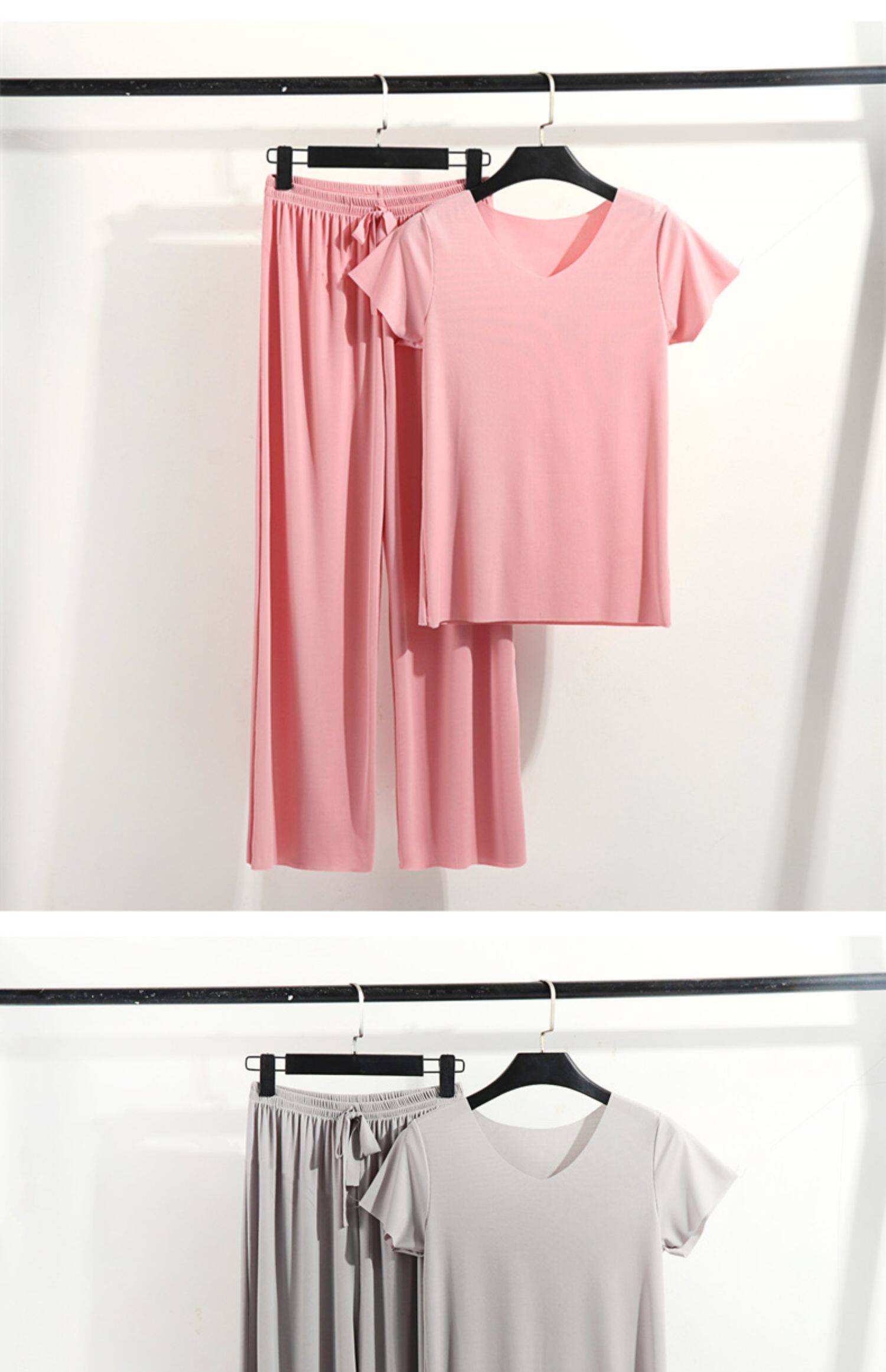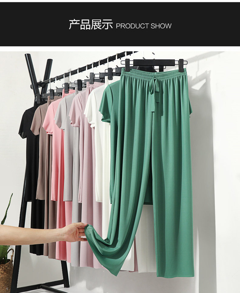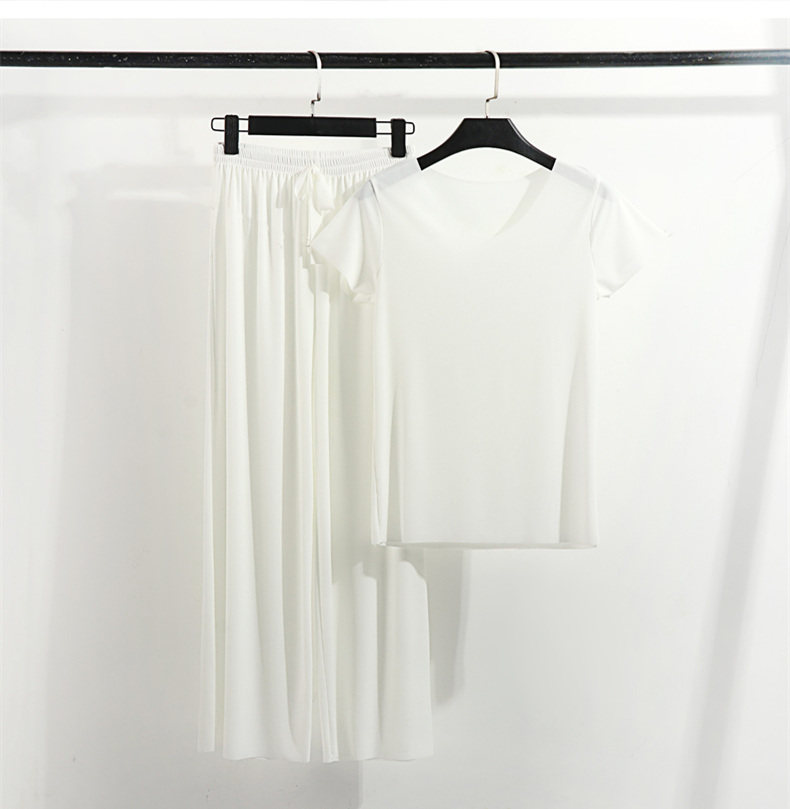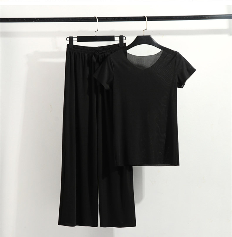 Летняя шелковая футболка, тонкая пижама, комплект для отдыха, штаны, V-образный вырез, оверсайз