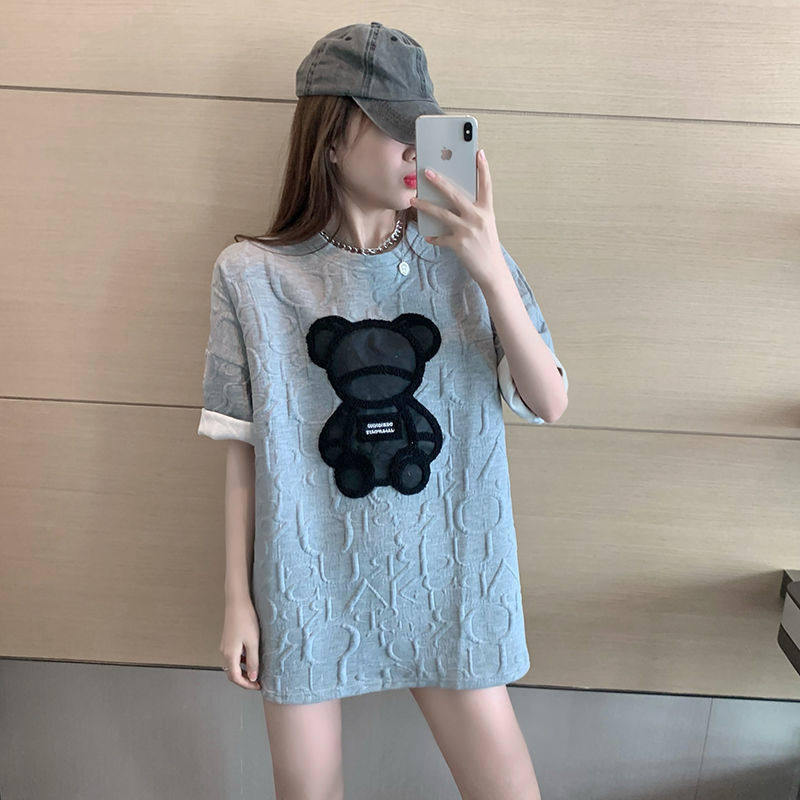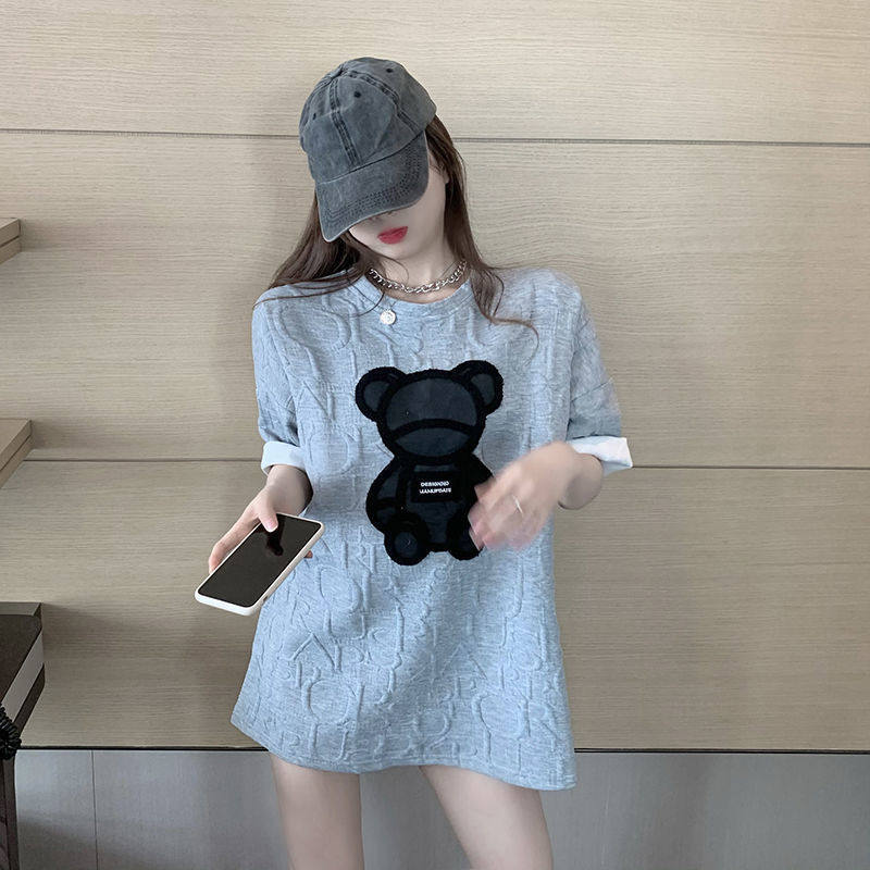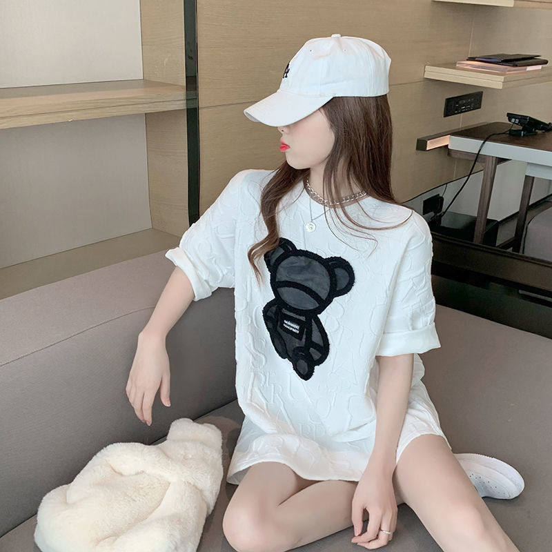 Tide, летняя дизайнерская футболка с коротким рукавом, городской стиль, с медвежатами, тренд сезона, в корейском стиле, европейский стиль