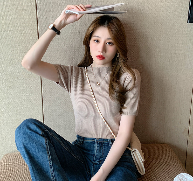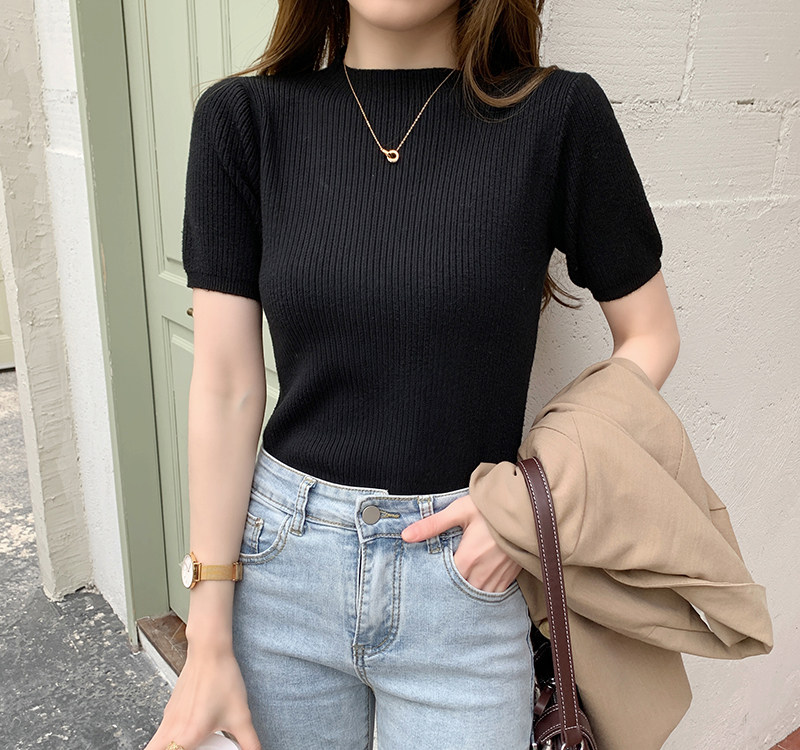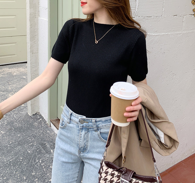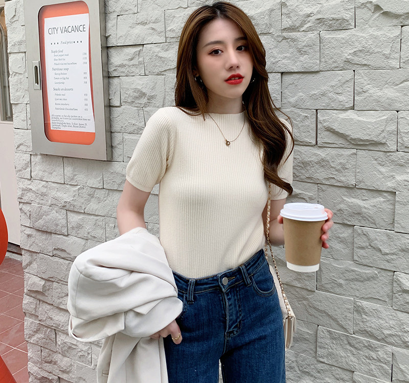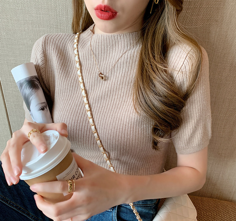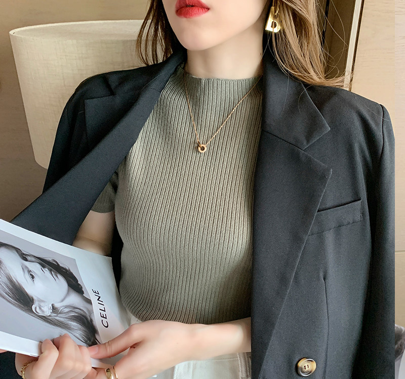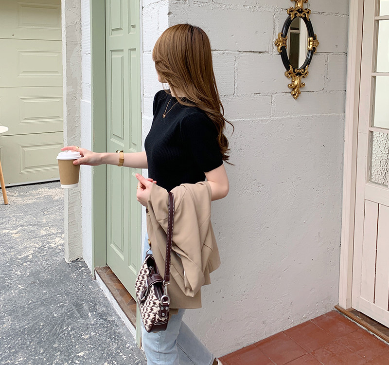Трикотажный летний свитер, тонкий ретро базовый приятный телу пиджак классического кроя, короткий рукав