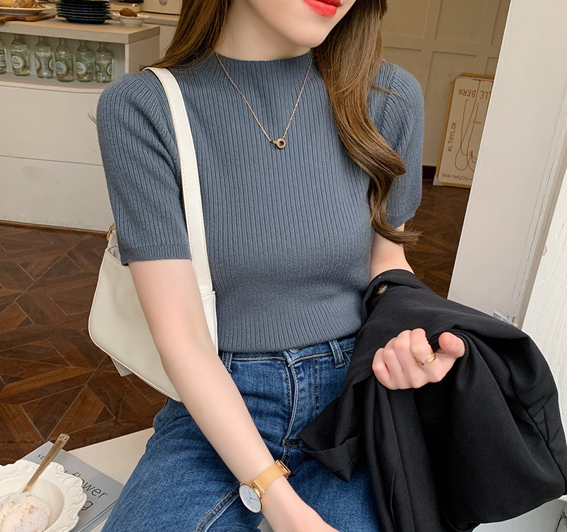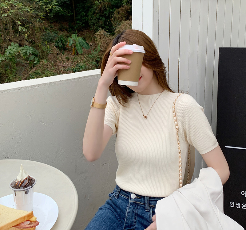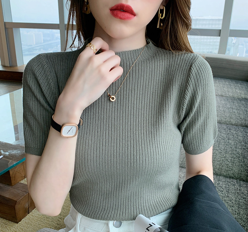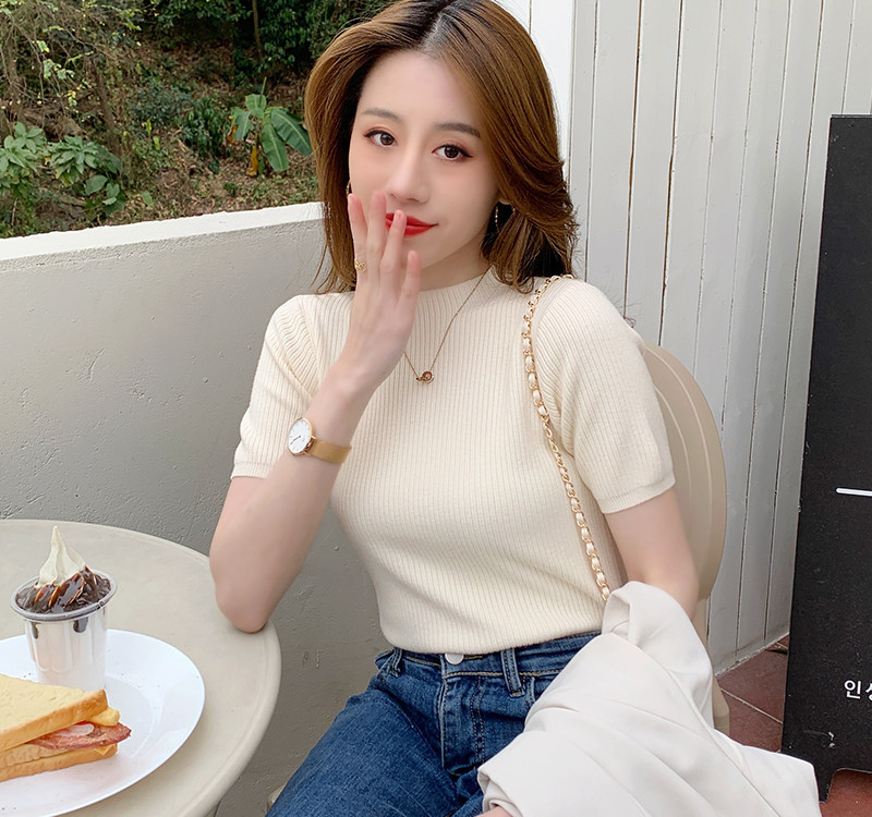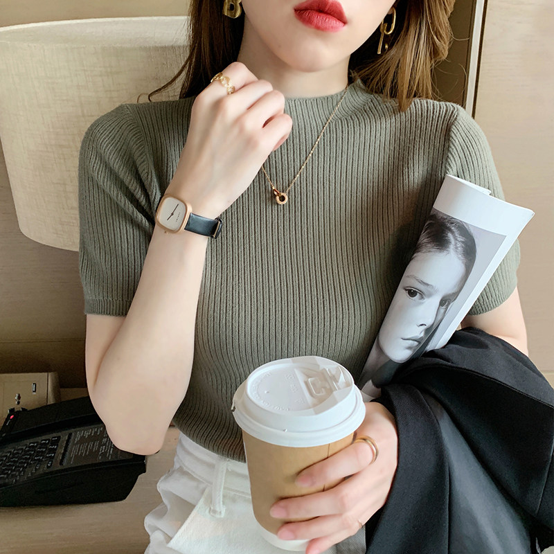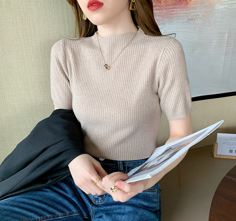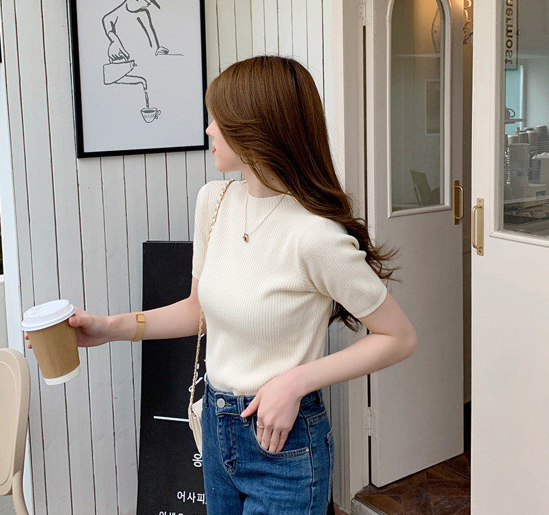 Трикотажный летний свитер, тонкий ретро базовый приятный телу пиджак классического кроя, короткий рукав