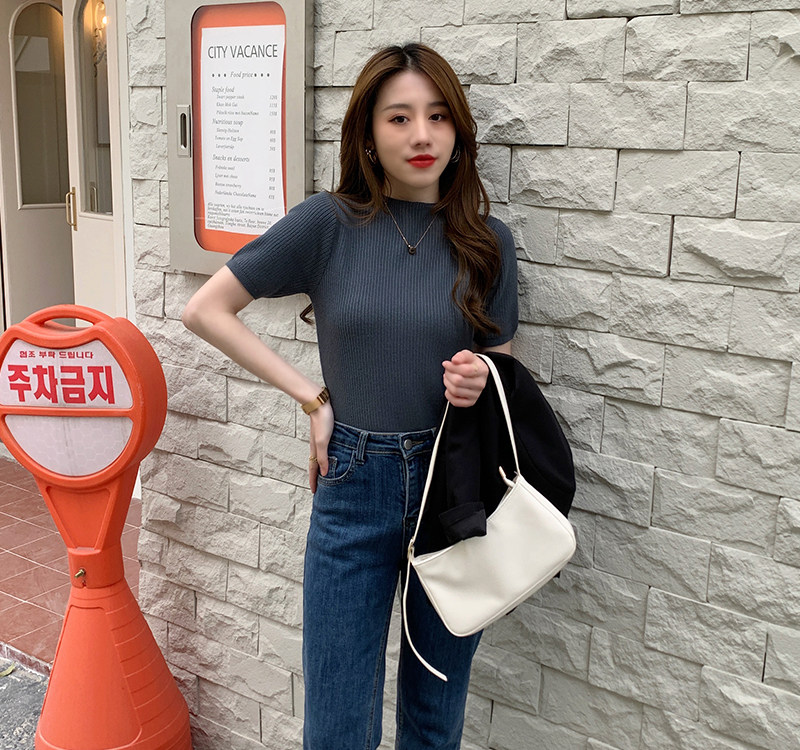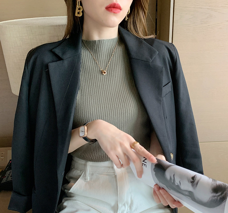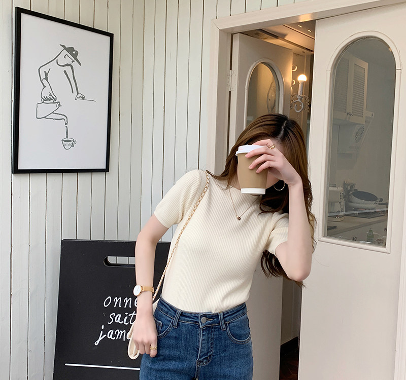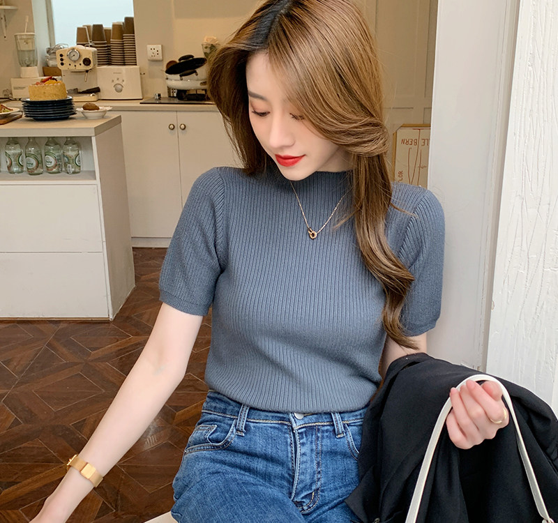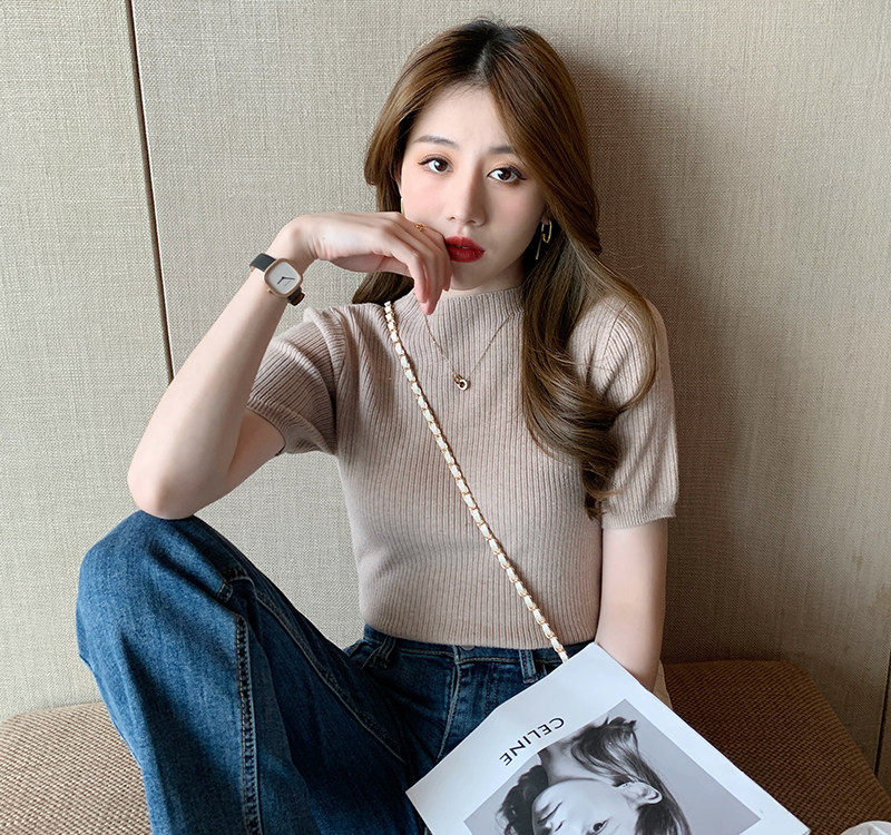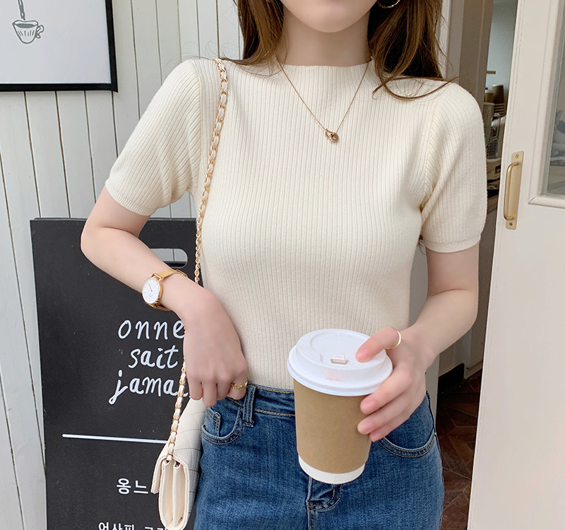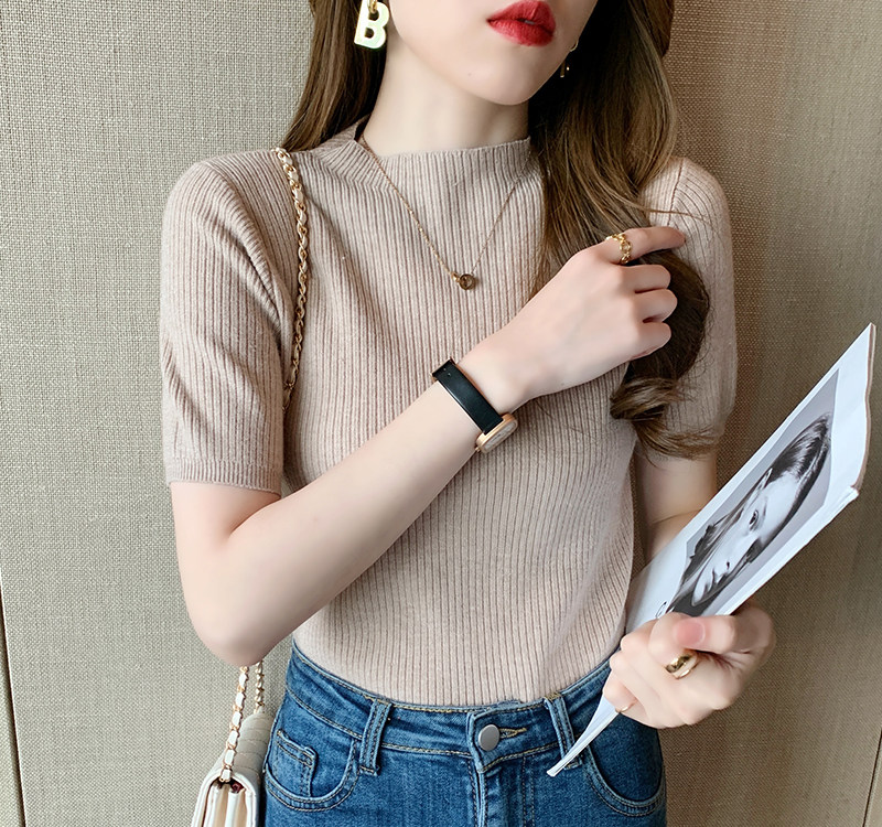 Трикотажный летний свитер, тонкий ретро базовый приятный телу пиджак классического кроя, короткий рукав