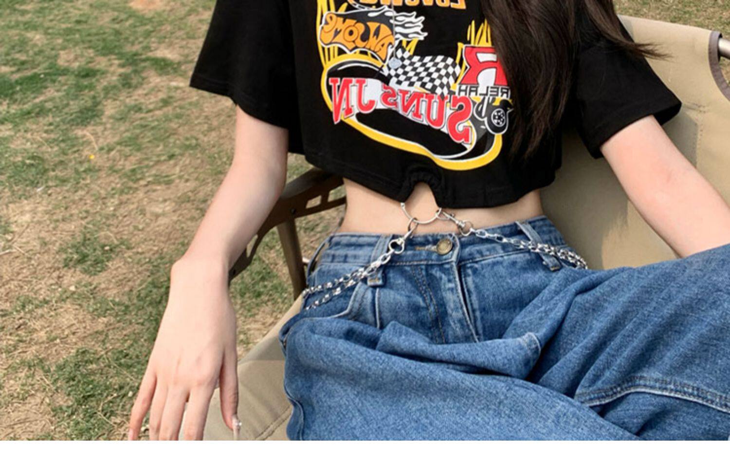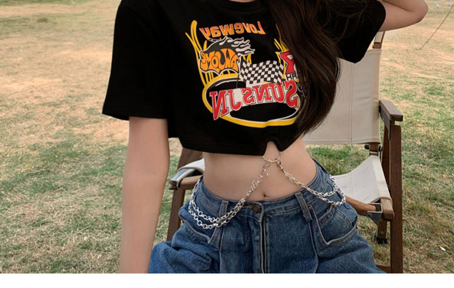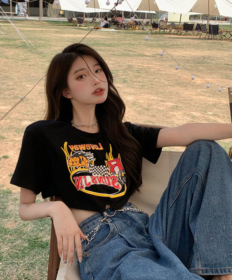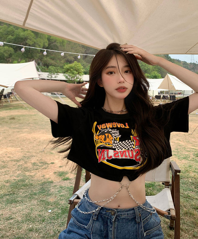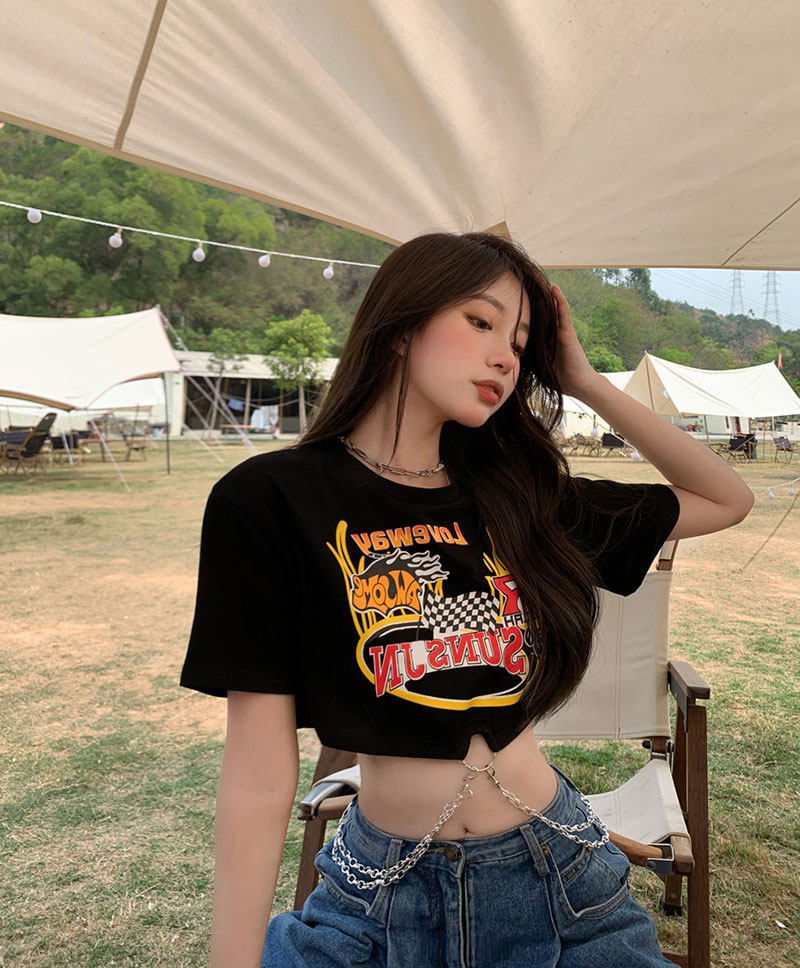 Tide, черная летняя сексуальная короткая футболка, европейский стиль, высокая талия